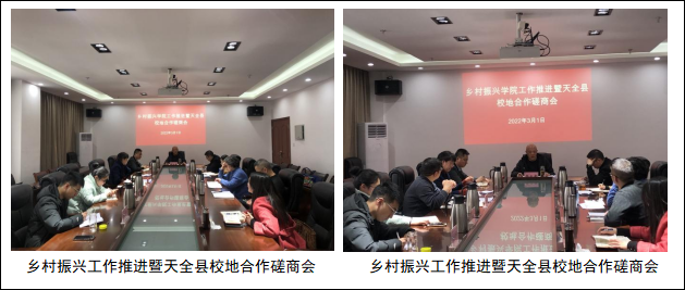 3.2022年3月1日,继续教育与国际交流处组织召开乡村振兴工作推进暨天全县校地合作磋商会,党委委员、副院长樊正康主持。