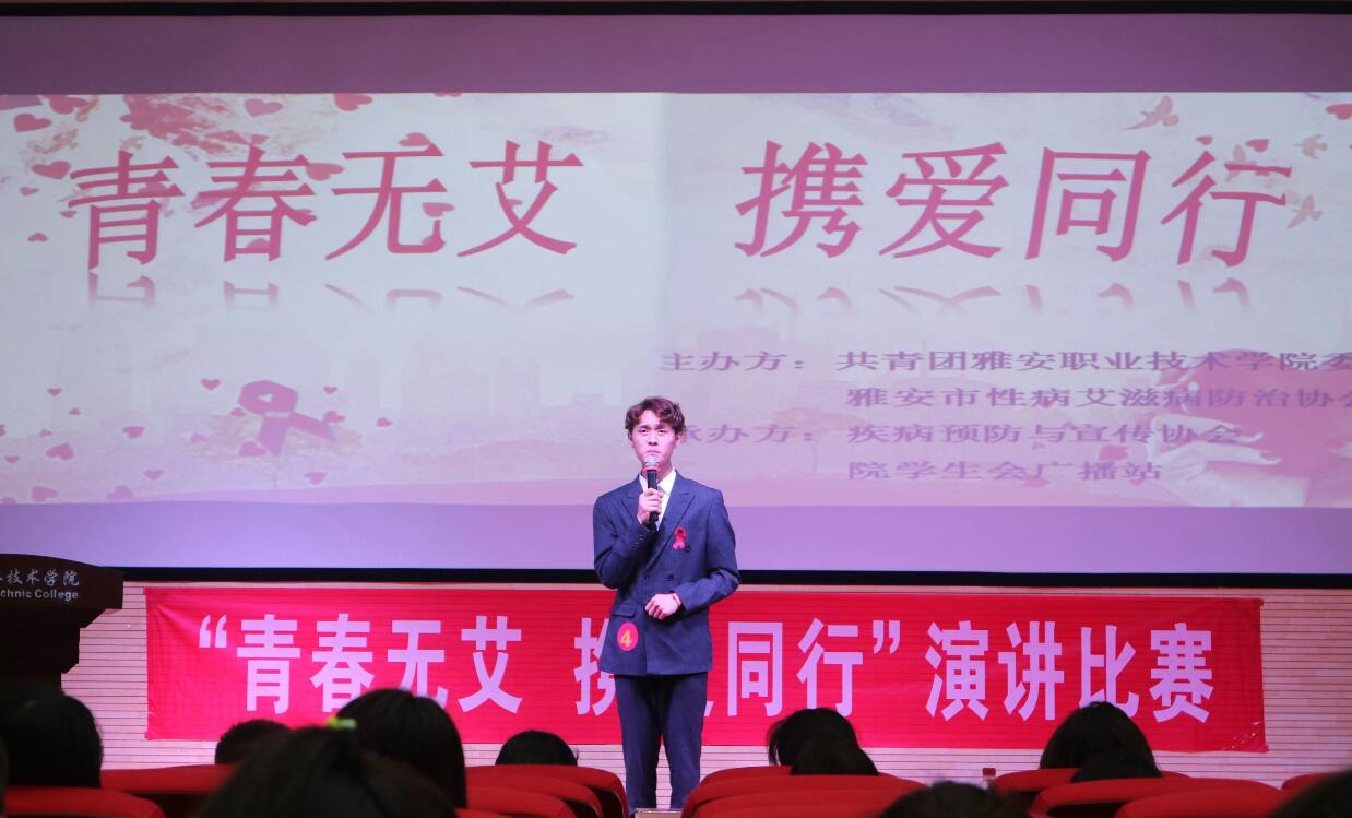 【本网讯】6月5日,由共青团beat365在线唯一官网委员会、雅安市性病艾滋病防治协会主办,疾病预防与宣传协会、院学生会广播站承办的“青春无艾,携爱同行”主题演讲比赛在青年路校区实验实训楼多功能厅举行。雅安市性病...