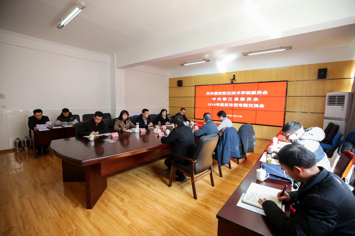 【本网讯】1月19日,雅江县委书记刘宗建、副书记刘静、组织部长古伯阳一行到我院对接精准扶贫相关工作,在青年路校区B207会议室召开了雅江县脱贫攻坚专题交流会。党委书记李春模,院长石静,党委副书记付洪涛,党委委...