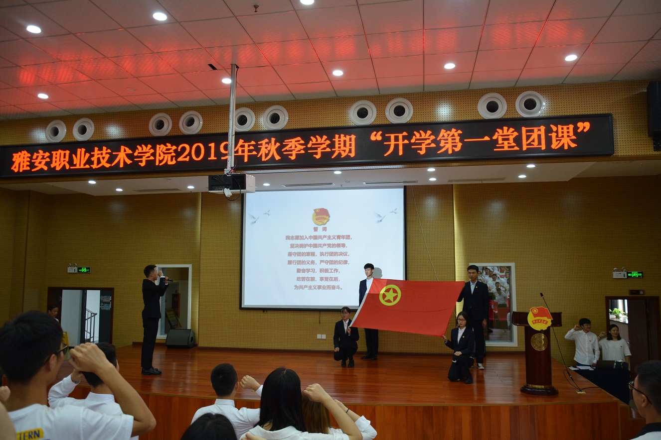 9月24日,院团委在青年路校区培训楼5楼博雅厅开展“庆祝中华人民共和国成立70周年—我与祖国共奋进”2019年秋季学期开学第一堂团课,共青团雅安市委副书记江成鹏、院团委书记刘永恩、院团委干事、各二级学院团总支(...