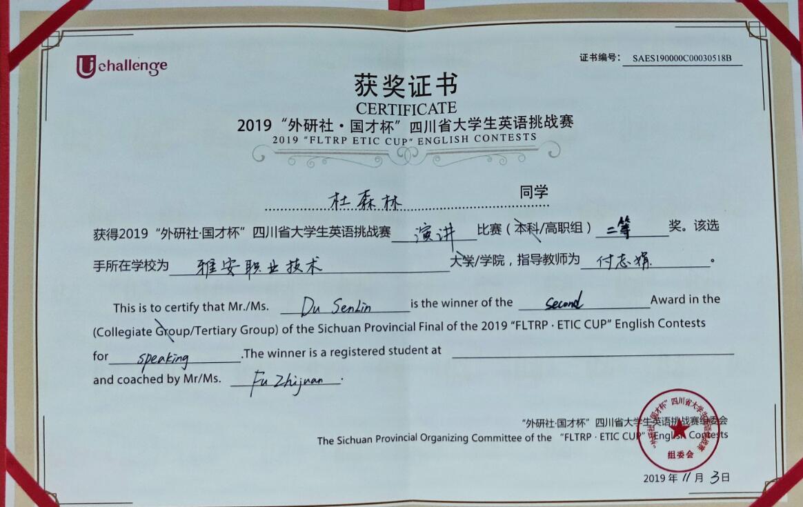 11-14-2019我院学生参加2019年四川省大学生英语挑战赛喜获佳绩