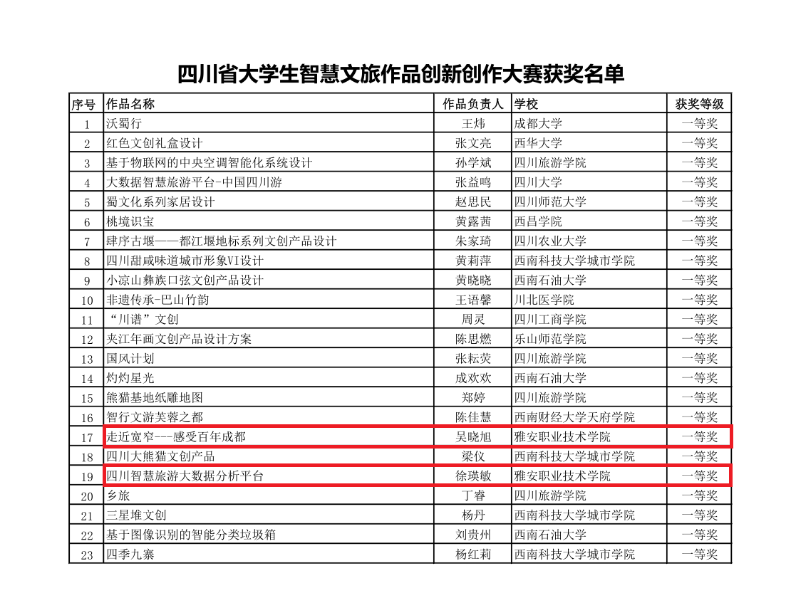 11月27日, 由四川省教育厅主办,四川旅游学院、四川省计算机学会承办的四川省大学生智慧文旅作品创新创作大赛落幕。本次大赛,共收到来自四川大学、西南科技大学等本专科院校的493件参赛作品。 智信学院收到...