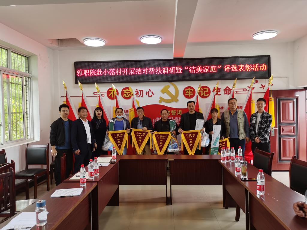 为持续深化“树新风促振兴”行动,扎实推进“洁美家庭”创建工作,9月29日,学院党委副书记付洪涛带队,学院党建联建的药学与检验学院院长李成忠、师范学院院长冯良亮等一行赴乡村振兴结对帮扶点天全县小落村调研,并为该村“洁美家庭”创建示范户、达标户授锦旗。“洁美家庭”创建活动是该村组织的一项面向广大家庭常态化开展的群众性家庭文明创建活动。此次评选活动,评选出10户“洁美家庭”示范户,20户“洁美家庭”达标户。...