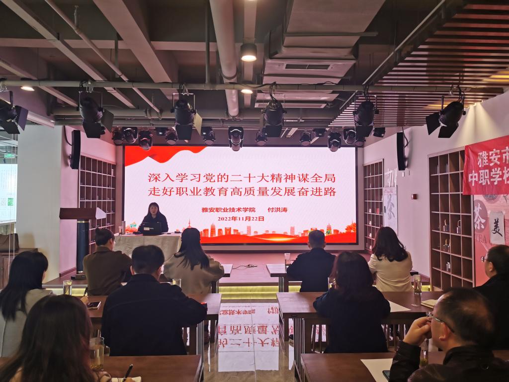 11月22日下午,学院机关后勤第一党总支第三支部与雅安市人力资源和社会保障局机关委员会第二党支部、雅安市就业创业促进中心党支部联合开展了“人社进校园 联建促发展——党的二十大精神专题学习”主题党日活动,活动在学院青年路校区茶创空间举行,学院党委副书记付洪涛以普通党员身份参加活动,共30余名党员同志参加本次活动。活动中,付洪涛以《深入学习党的二十大精神谋全局 走好职业教育高质量发展奋进路》为题,分别从深...