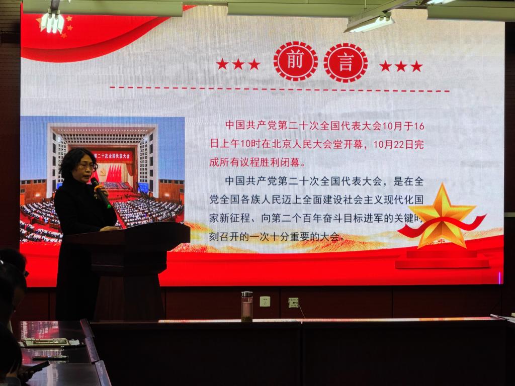 11月22日,学院工会主席夏安琼在青年路校区图书馆903会议室为师范学院全体教职工宣讲党的二十大精神,并与师生谈心谈话。师范学院党总支书记陆小路主持会议。夏安琼围绕党的二十大召开的重大意义,我们国家过去五年的工作和新时代十年的伟大变革等方面宣讲。她强调,党的二十大是在迈上全面建设社会主义现代化国家新征程、向第二个百年奋斗目标进军的关键时刻召开的一次十分重要的大会,希望全体教职工深刻领悟“两个确立”的决...