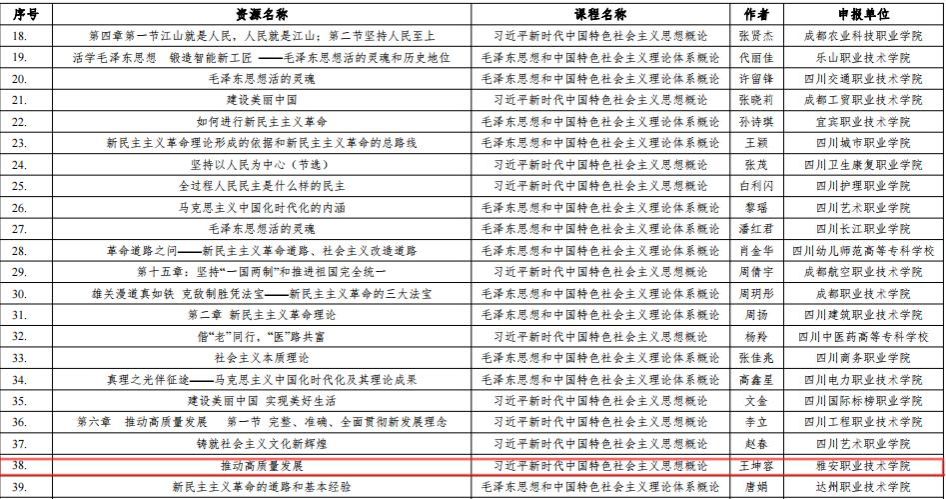 03-20-2024喜报:学院两门思政课入选四川省职业学校思想政治课程示范课