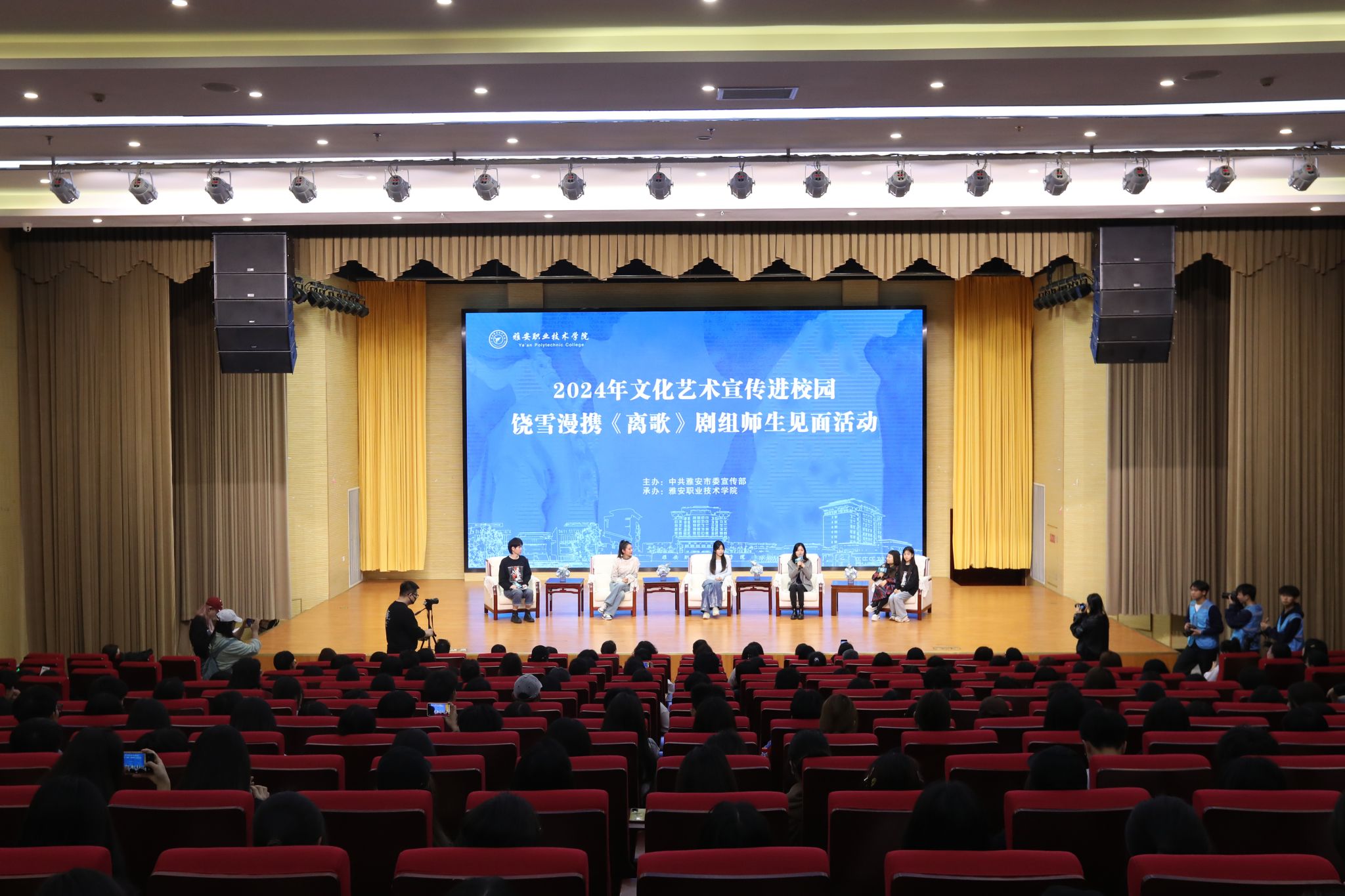 3月30日,一场别开生面的文化宣传活动在学校经开区校区聚雅厅精彩上演。川籍知名女作家、金牌编剧饶雪漫携网剧《离歌》剧组,在即将上线爱奇艺播出的前一天走进校园,与300余名师生代表共聚一堂,畅谈青春与成长,共同感受影视文学的魅力。市委宣传部副部长、网信办主任、新闻出版局(版权局)局长袁久胜,学校党委常委、宣传统战部部长、工会主席夏安琼全程参加了活动。这是一部由原著作者饶雪漫亲自操刀改编的网剧,以雅安女...