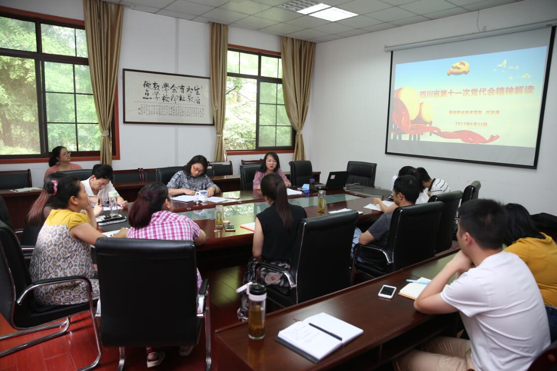 【本网讯】为认真学习贯彻四川省第十一次党代会精神,切实把干部职工的思想统一到省党代会精神和省委决策部署上来,学院党委副书记付洪涛在“七一”前夕为组织宣传部党支部上党课,宣讲了省十一次党代会精神。 付洪涛...