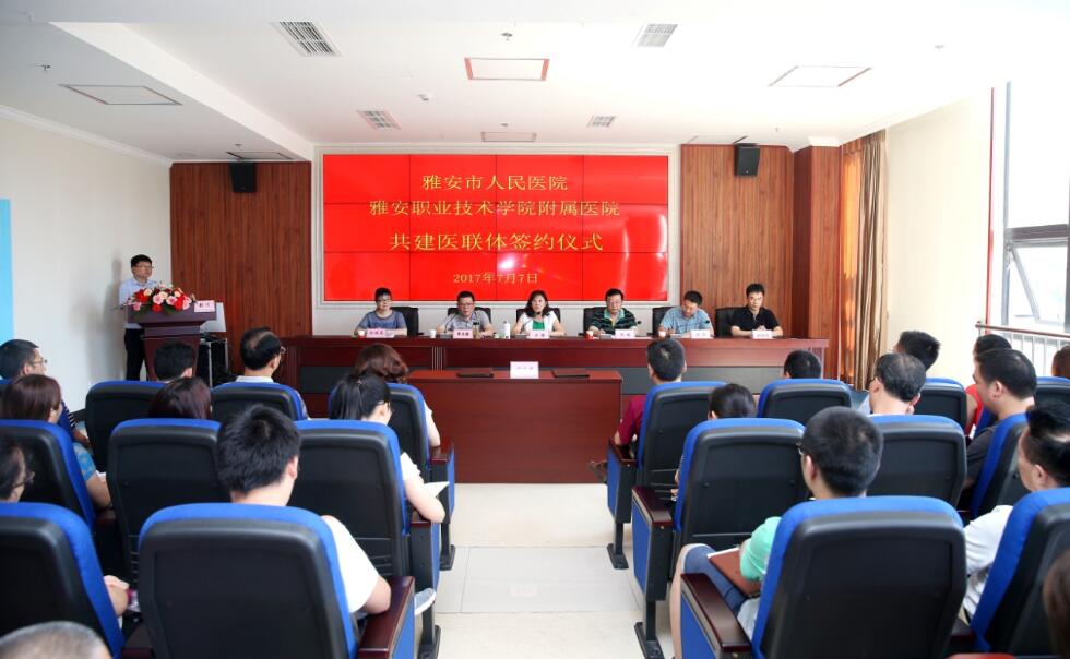 【本网讯】7月7日,附属医院和雅安市人民医院在附院门诊大楼十楼学术厅举行《医联体协议书》签署仪式。学院党委副书记、院长石静,附属医院院长薛正毅、党支部书记祝继英,市人民医院院长邱雄、副院长张德明,市卫计...