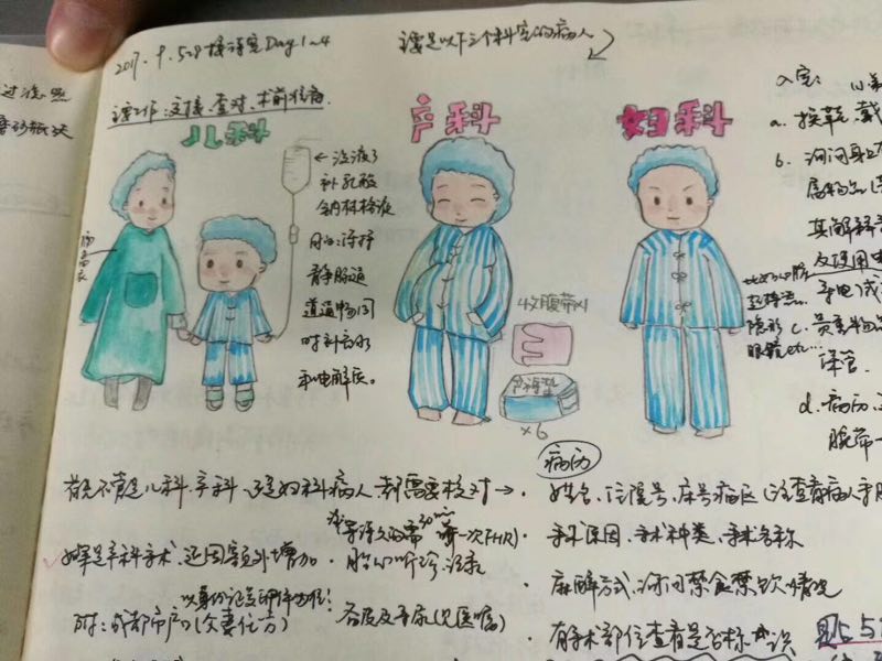 10-09-2017我院护理系实习生用漫画做笔记