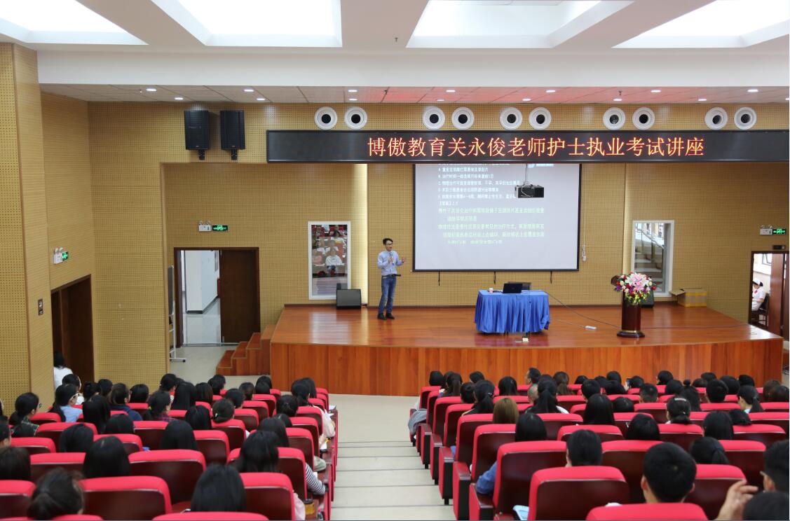 【本网讯】5月3日,博傲教育资深专家关永骏来到护理系开展护士执业考试培训讲座。 300余名同学参加了本次讲座。 关老师在讲座中紧贴护考趋势等内容,深度把握考试重点,以幽默生动、互动感强的方式为同学们进行了讲解...