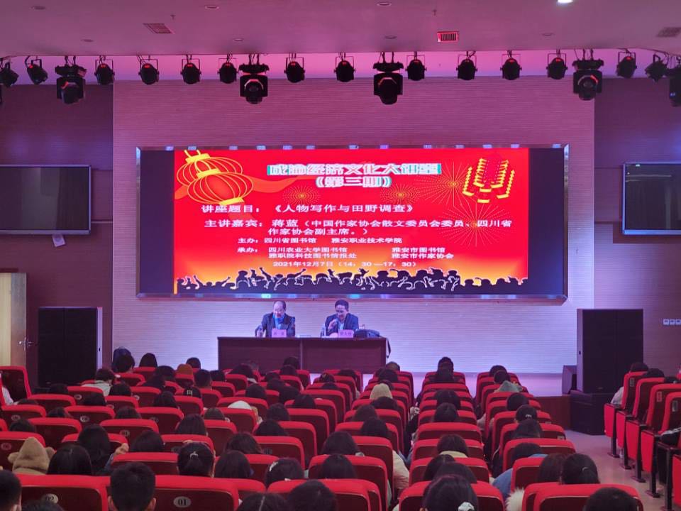 12月7日下午,由四川省图书馆、beat365在线唯一官网主办的“成渝经济文化大讲堂”第三期在学院青年路校区汇雅厅举行。讲座由中国作家协会散文委员会委员、四川省作家协会副主席蒋蓝先生主讲,雅安市图书馆、雅安市作家协...