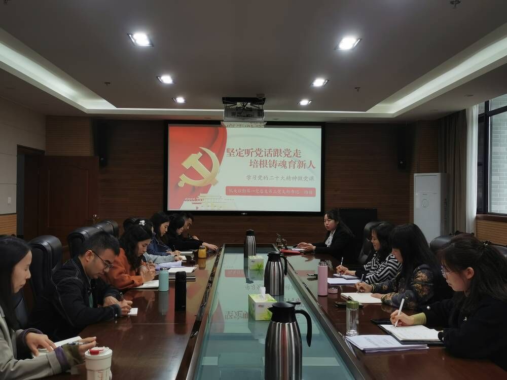 10月28日下午,机关后勤第一党总支第三党支部召开党员大会,会议由支部书记杨梅主持。学院党委副书记付洪涛以普通党员身份参加会议。会上,杨梅作了题为《坚定听党话跟党走 培根铸魂育新人》微党课,组织全体党员和群众教师集中学习党的二十大精神,详细介绍了党的二十大召开的重要意义、党的二十大报告主要内容、党的二十大代表风采,并结合自身岗位实际分享了学习心得和体会,鼓励全体党员教师要坚定理想信念、提高党性修养,...