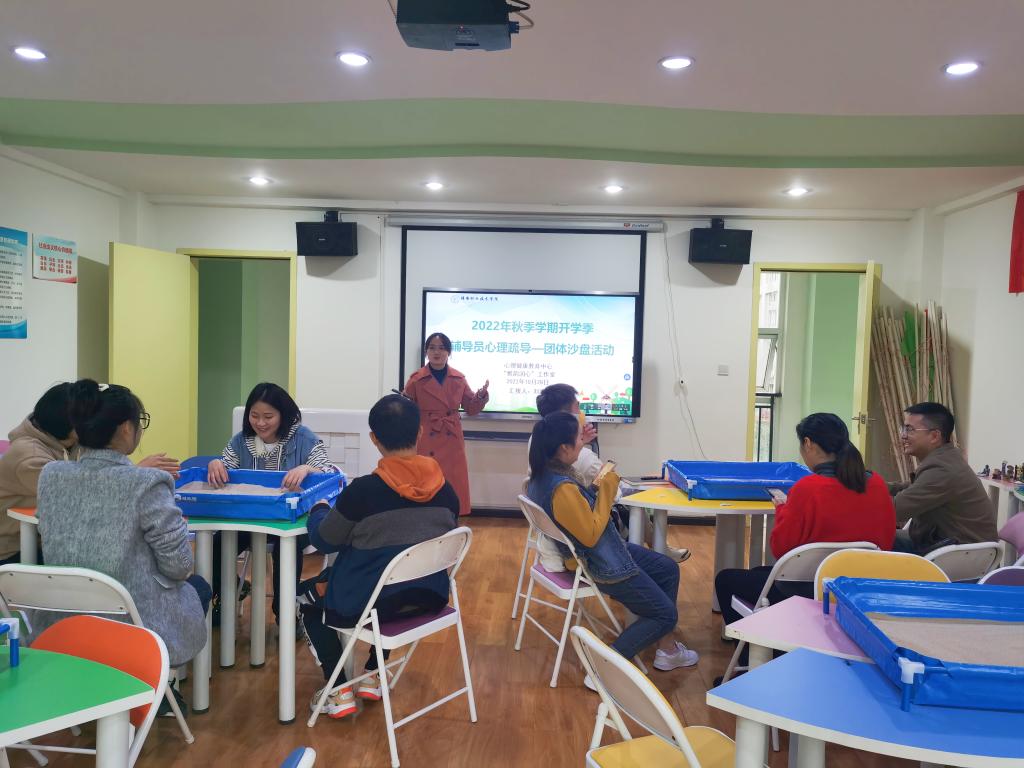 在当前严峻复杂的疫情防控形势下,学院高负荷工作的辅导员们也面临着巨大的工作压力和挑战。为加强特殊时期辅导员队伍心理建设和对辅导员的人文关怀,结合新形势下的高校环境和辅导员的工作特点,学院心理健康教育中心联合“雅韵润心”工作室,于10月28日下午3点在青年路校区未成年人心理成长指导中心开展“解压赋能,做好思想领路人”心理团辅活动。本次活动通过团体沙盘游戏的形式为辅导员释放压力,纾解情绪宁静的午后,温馨...