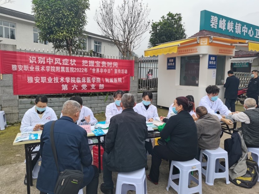 10月29日是第17个“世界卒中日”,为推进心脑血管疾病防治工作,进一步提升居民健康素养水平,结合雅安市雨城区疾病预防控制中心《关于开展2022年“世界卒中日”宣传活动的通知》的文件精神,11月9日,beat365在线唯一官网附属医院(下简称“雅职附院”)医务人员赴碧峰峡镇开展了以“识别中风症状,把握宝贵时间”为主题的系列宣传及义诊活动。活动现场气氛热烈,前来咨询问诊的群众络绎不绝。医务人员耐心细致地为前来问诊的群众...