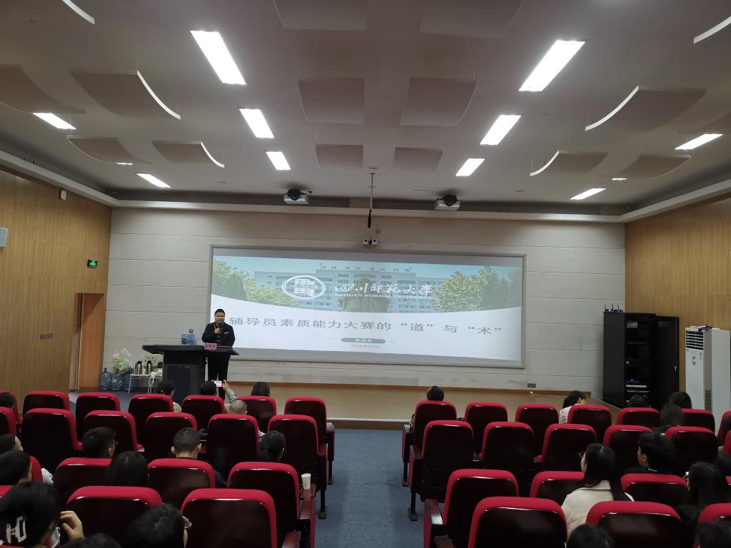 10月10日上午9:30,四川师范大学辅导员、四川省第四届高校辅导员年度人物、第八届四川省高校辅导员素质能力大赛一等奖获得者张邵希老师应邀在学院经开校区第二教学楼2204会议室作题为“辅导员素质能力大赛的‘道’与‘术’”的专题讲座。学生处相关负责人,各二级学院副书记和全体辅导员共同聆听了此次讲座。会上,张邵希表示,辅导员素质能力大赛是辅导员专业化、职业化的一条道路,是增强职业认同感的一条途径,是展示自我风...