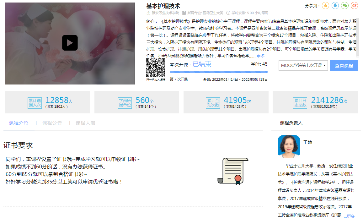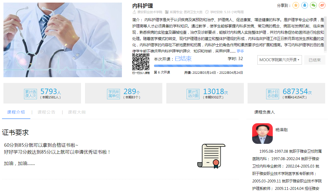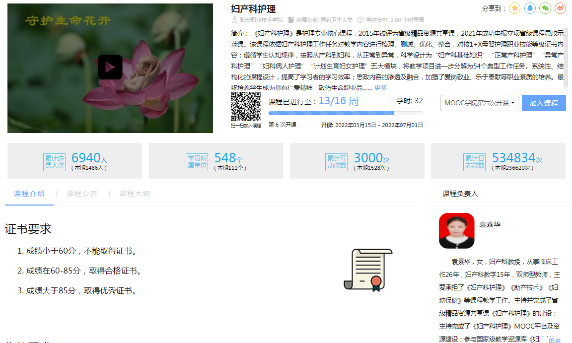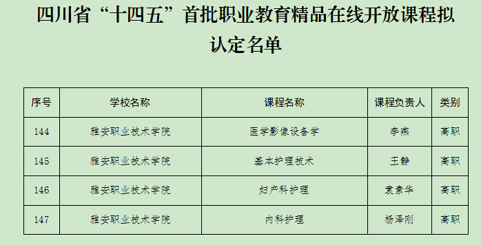 近日,四川省教育厅公示了“十四五”首批职业教育精品在线开放课程认定名单,beat365《基本护理技术》《内科护理》《妇产科护理》和《医学影像设备学》,共四门课程被认定为省首批精品在线开放课程。此次教育厅共认定了150门课程,其中高职课程145门,中职课程5门,beat365上述四门课程入选认定名单。