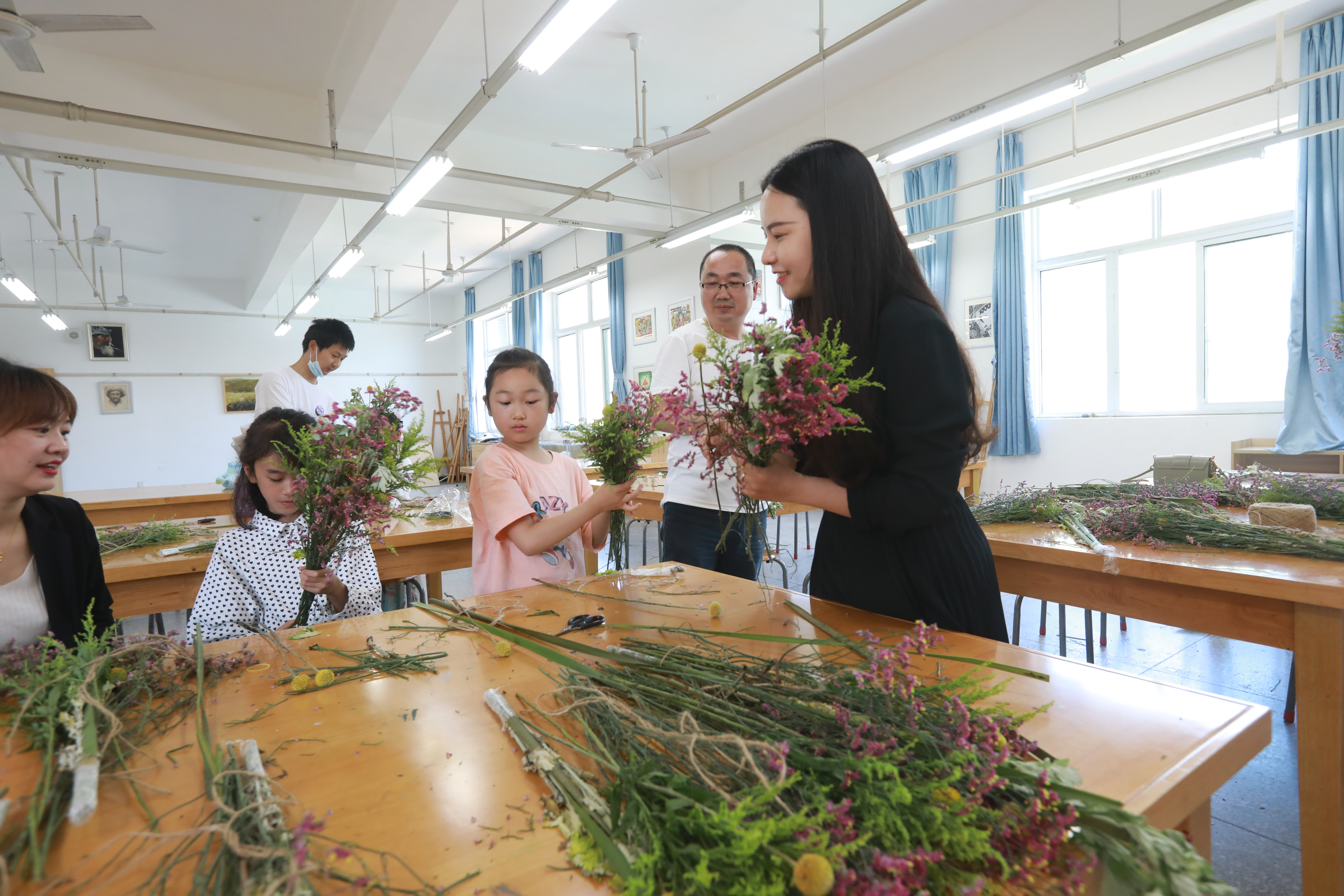 学院工会主席夏安琼到现场看望并代表学院向参与活动的教职工和小朋友们表达了节日的慰问和诚挚的祝福,对承担项目指导任务的老师表示感谢。她希望大家通过活动,增进交流,度过一个有滋有味、意义非凡的传统佳节。随后,在一片欢乐祥和的欢笑声中,大家或包粽子,或扎花,或绘画,或制作头饰,浓浓的节日氛围弥漫在活动现场的每个角落。