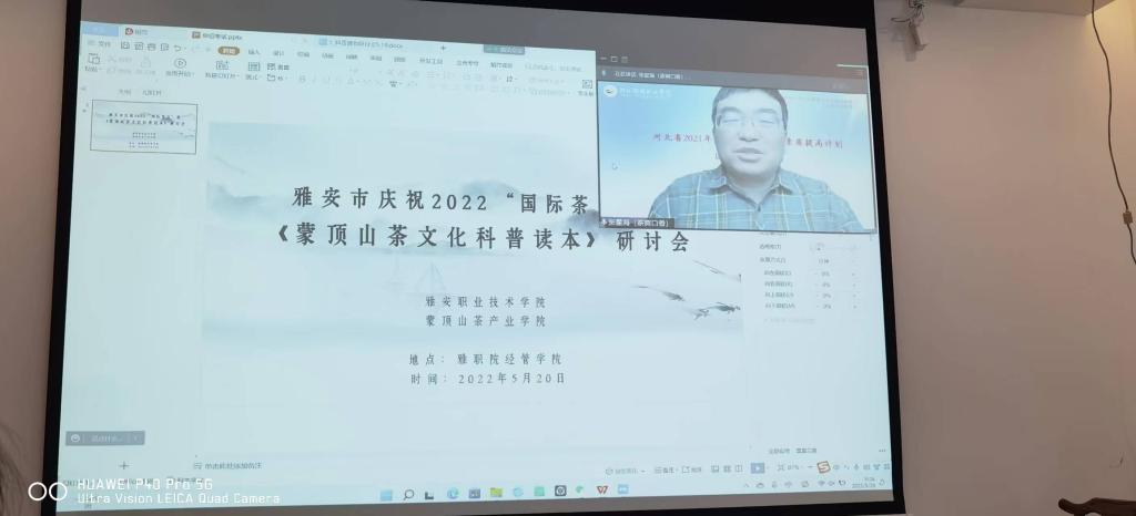 5月21日,由雅安市农业农村局、beat365在线唯一官网蒙顶山茶产业学院主办的“雅安市庆祝2022‘国际茶日’暨《蒙顶山茶文化科普读本》(以下简称读本)”在学院茶创空间,以线上线下结合的方式举行。