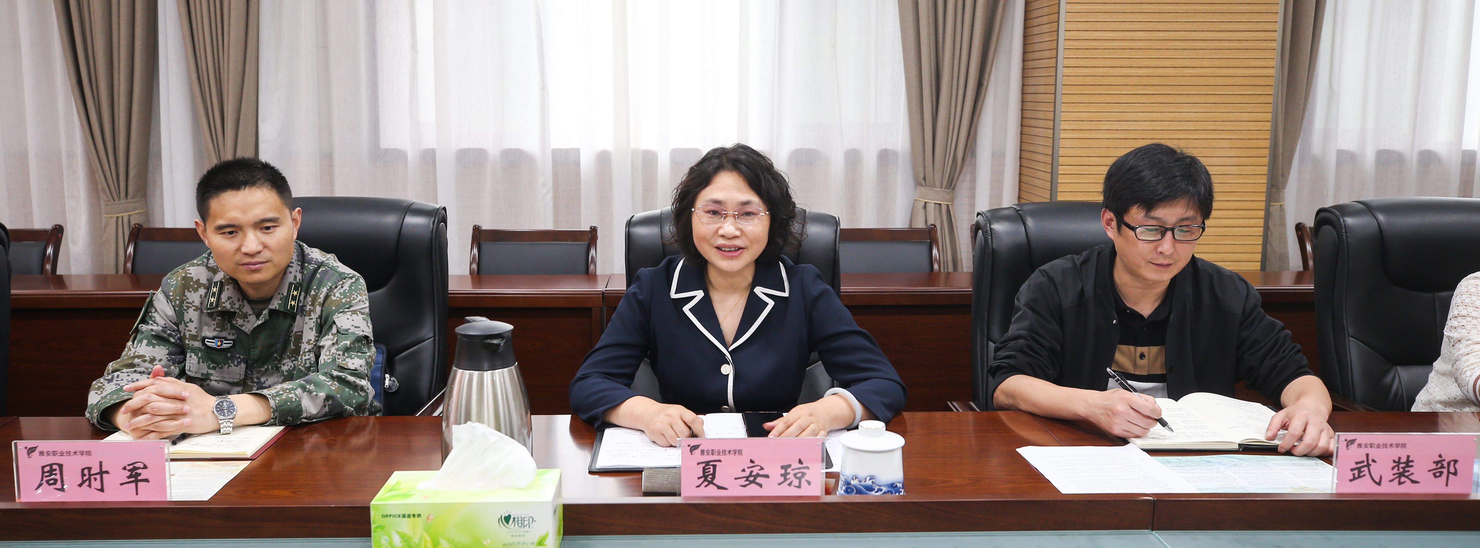 5月25日,学院在经开区303会议室举行2022年度征兵工作推进会。学院党委副书记、院长、征兵工作领导小组组长黄诚陪同四川省军区政工局副主任梁永一行对学院党委武装部、征兵工作站进行了调研,雅安市人民政府征兵办公室副主任、军分区动员处处长李乾兵,学院工会主席夏安琼,各职能部门相关负责人参加征兵工作推进会议。