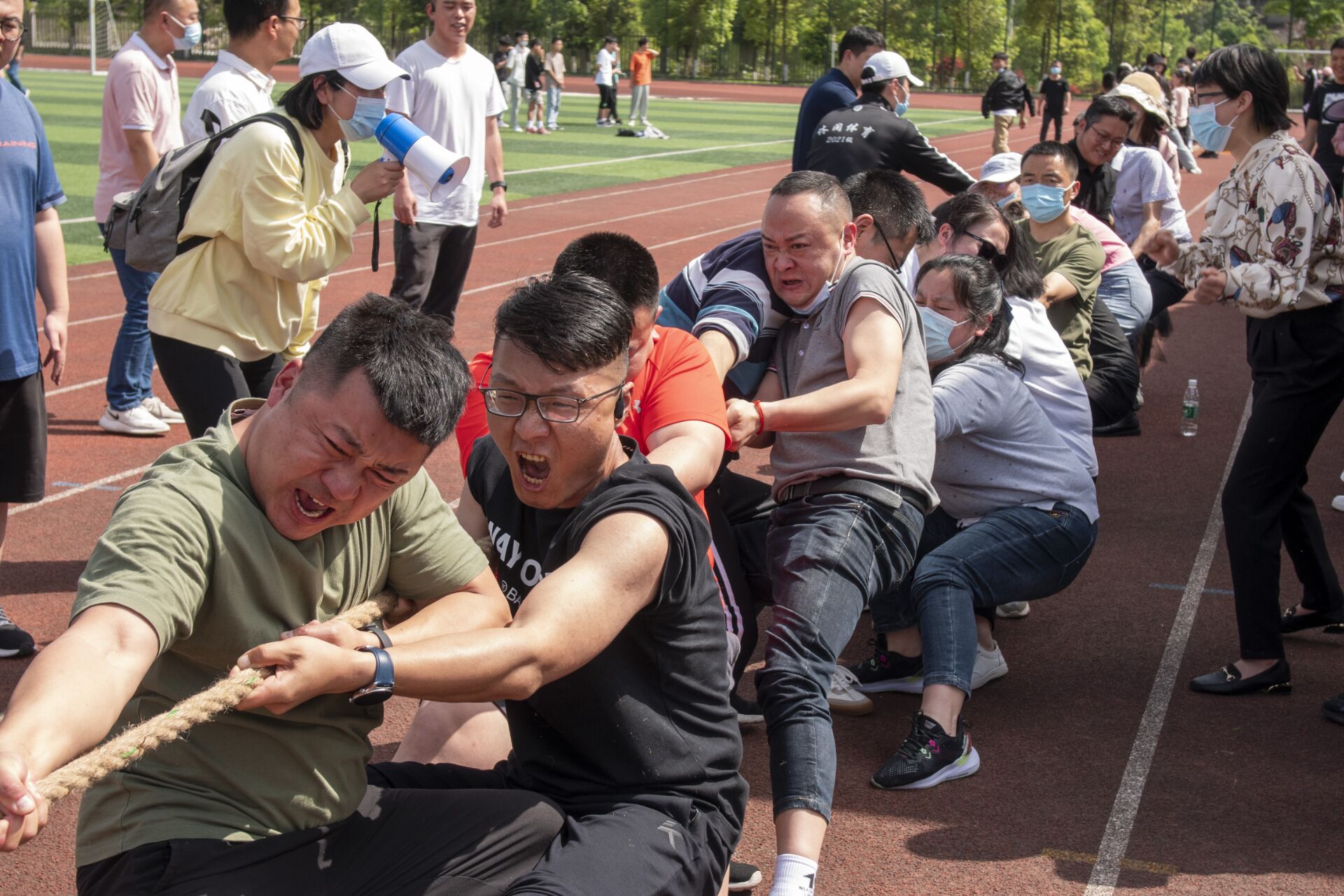 在开幕式后随即举行拔河比赛小组预选赛,共进行教职工组和学生组比赛21场。经过预赛,教职工组别中,后勤工会小组、中医与康复养生学院工会小组、药学与检验学院工会小组晋级教职工组决赛;学生组中,师范学院、中医与康复养生学院、护理学院、临床医学院晋级决赛。“康养杯”拔河比赛暨气排球联赛预计进行14天共80场比赛。