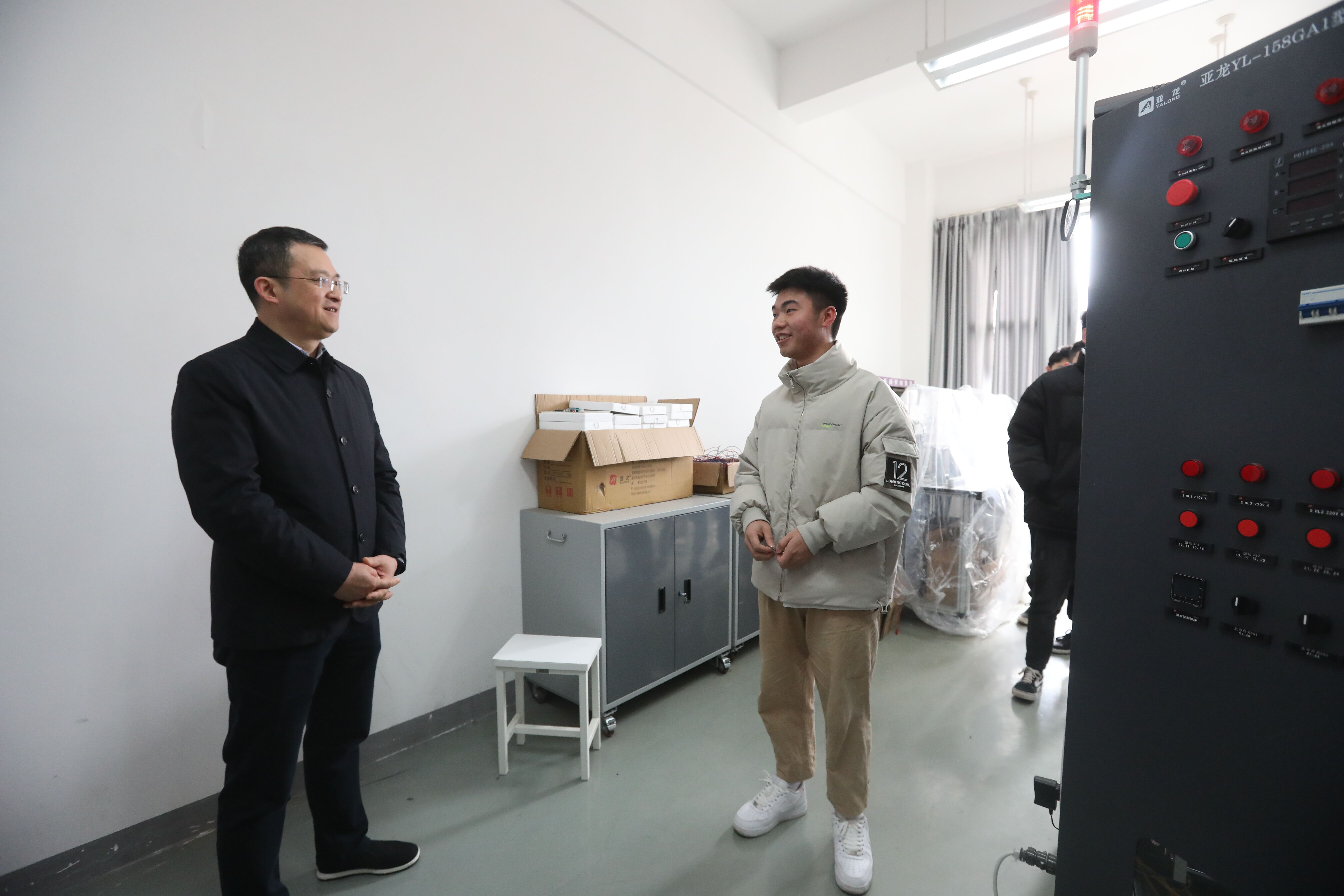 2月25日,院长黄诚走访经开区和青年路两个校区,了解调研各二级学院教学运行、学生管理、行政办公情况,查看实验实训室,并就相关工作做了现场指导。学院党政办、教务处负责人陪同走访调研。