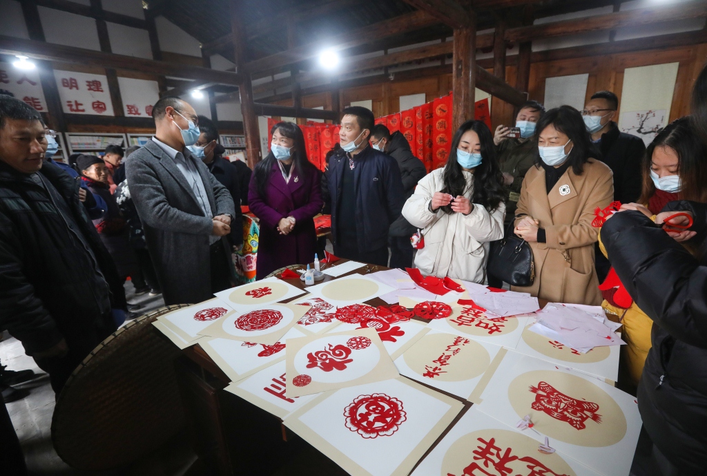 会后,李春模一行来到村医室外看望慰问村民和开展志愿服务的师生们。虽是冬寒料峭,但学校临床医学院、附属医院组织的医疗义诊服务点已有不少村民在问诊,医疗专家们耐心细致地为村民诊断、讲解,同时向村民们宣讲新冠疫情防控知识和要求。随后来到村文化活动室,气氛热烈而温馨,师范学院师生们正在忙碌地写着、剪着,一幅幅充满温暖的春联、一张张精美的窗花剪纸不时送到村民手中,让大家提前感受到新春的欢乐与祥和。当地村民激动地说,“你们对我们太好了!我都是来第3次了。给我们送来了专家,还给我们送来了新年的祝福,感谢学校对我们的帮助!”