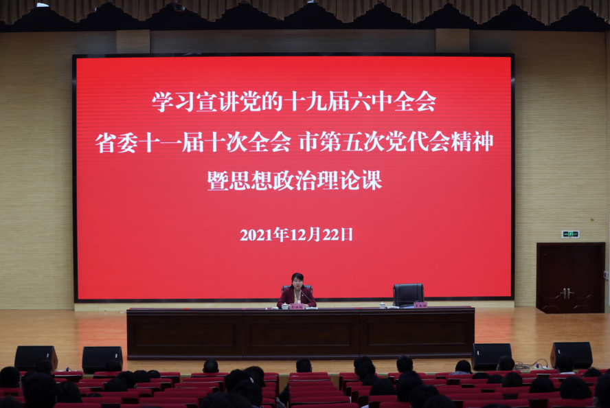 市政府秘书长李阳军、副秘书长陈树泉、市教育局局长赵敏、市委宣传部机关党委书记雷华、市政府办机关第一党支部全体党员以及学院党政领导班子成员、中层干部和师生代表,共计90余人聆听了宣讲报告。