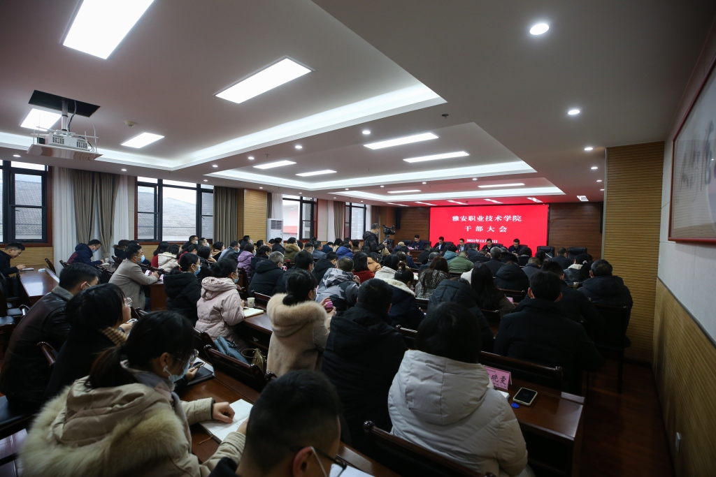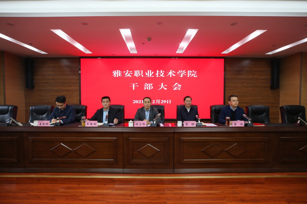 12月29日上午,学院在经开区校区311会议室召开干部大会,宣布省委教育工委关于学院院长的任职决定。省委教育工委一级巡视员胡卫锋,雅安市委常委、宣传部部长聂颖,省委教育工委、教育厅党建与干部人才处副处长姜跃明出席会议。会议由学院党委书记李春模主持。