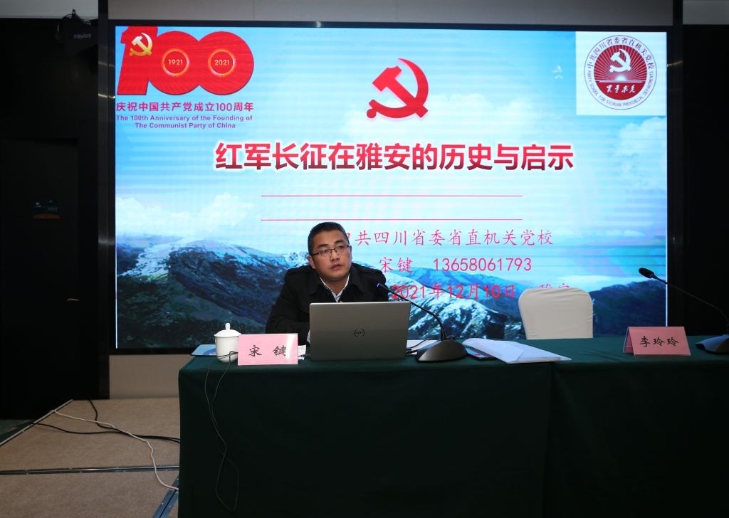 在专题讲座中,宋键以《红军长征在雅安的历史与启示》为题进行了专题讲座。他从红军长征在雅安的主要历程、中央红军长征在雅安的四大要事、讲好长征故事、党史故事的思考等三方面深刻解读了红军长征在雅安创造的惊天地、泣鬼神的历史,强调始终坚守人民立场的重要性。他指出,思政课是落实立德树人根本任务的关键课程,党的历史是最好的“大思政课”教材,思政课教师需要学党史、讲党史,把党领导人民进行革命、建设、改革、复兴的辉煌历史讲清楚,把党和红军坚定理想信念、排除万难夺取胜利的光辉形象讲生动,把党和红军与人民的鱼水深情讲透彻,把中国共产党为什么能、人民为什么衷心拥护和坚定支持党等深刻道理讲明白。四川大学马克思主义学院教授李辽宁,以《中国共产党为什么“能”的历史阐释——学习贯彻十九届六中全会精神》为题,从真理力量、领导力量、物质力量、精神力量、时间力量等五个方面深入讲解了中国共产党为什么“能”。他强调,中国共产党为什么能,中国特色社会主义为什么好,归根到底是因为马克思主义行。事实证明,只要始终坚持党中央的坚强领导,始终坚守人民至上的价值立场,始终坚持自我革命的政治自觉,始终坚持实干笃行的奋斗品格,中华“复兴”号巨轮就一定能行稳致远,扬帆远航。