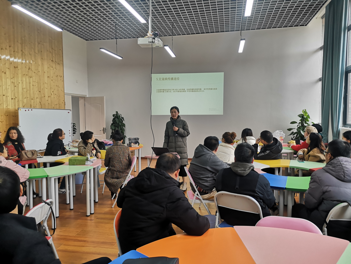 2021年12月1日是第34个“世界艾滋病日”。为进一步扩大艾滋病防治知识宣传,让更多教职工了解艾滋病、关注艾滋病,树立积极健康的心理态度,11月30日,beat365在线唯一官网工会联合心理健康教育中心,组织开展了一次以“知艾防艾 共享健康”为主题的艾滋病防控知识宣讲暨心理团辅活动,学院工会副主席姚婕及部分教职工代表共50余人参加了此次活动。