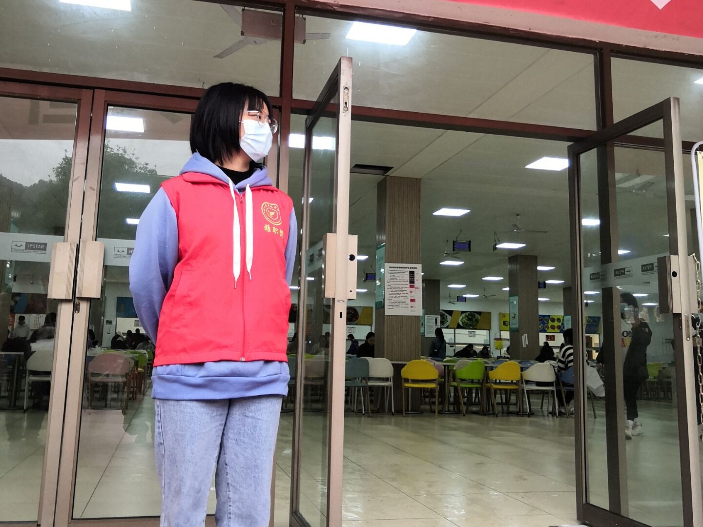 “同学们请佩戴好口罩,保持一米社交距离,就餐前请规范洗手”。来自师范学院的志愿者周杨穿着红马甲,在青年路校区食堂门口一遍遍提醒同学有序排队、佩戴好口罩,耐心叮嘱注意事项,一刻都不懈怠,食堂现场秩序井然。