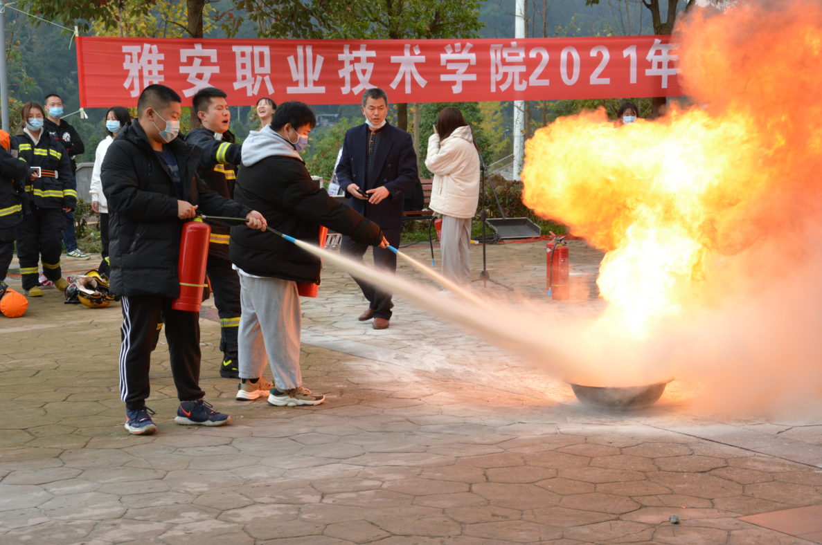 此次演练,学院还邀请了雅安市消防救援作战员现场观摩指导,并向师生讲解防火、应急逃生以及灭火器的使用方法,同学们都认真观看了现场灭火器使用演示,部分同学参与了现场灭火。学院附属医院急诊科主任韩廷勇现场指导并讲解了紧急救护知识,同学们都受益匪浅。