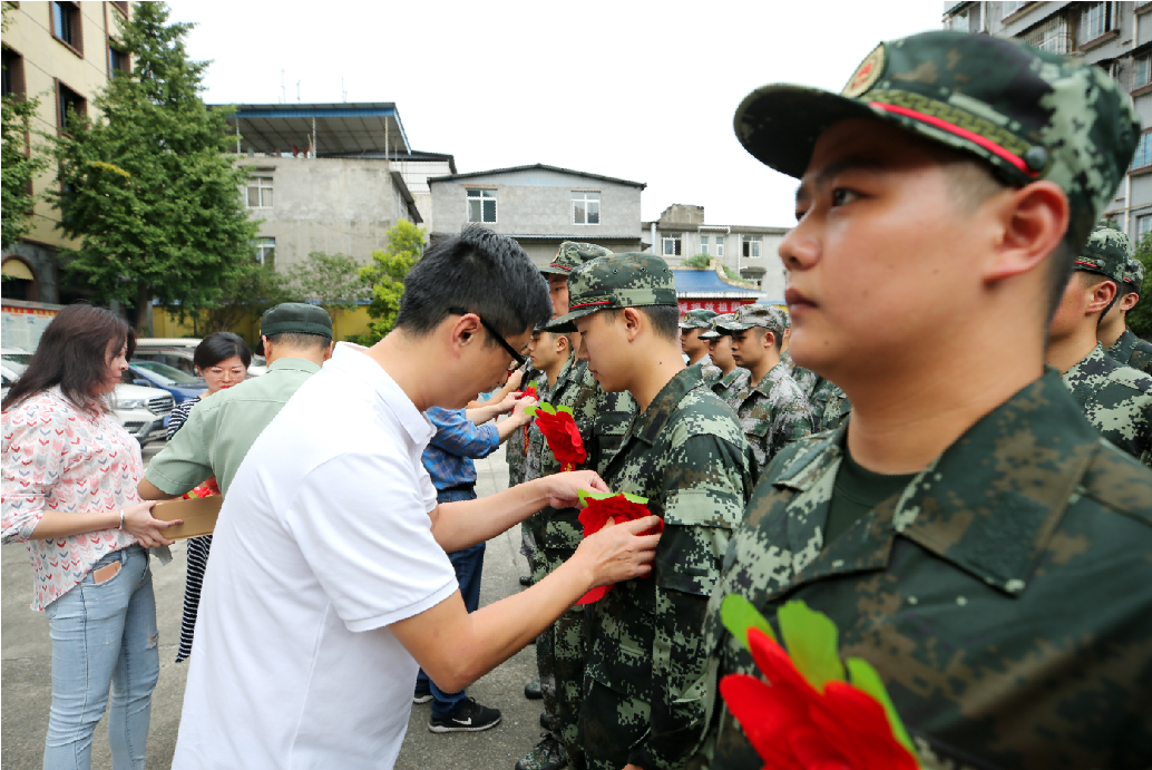 各位领导和学院征兵工作站工作人员为2021届新兵披上绶带、佩戴红花。新兵们将带着对军营的向往,带着学院、亲人的嘱托,怀揣着美好的希望,陆续踏上前往军营的列车,完成青春的使命。