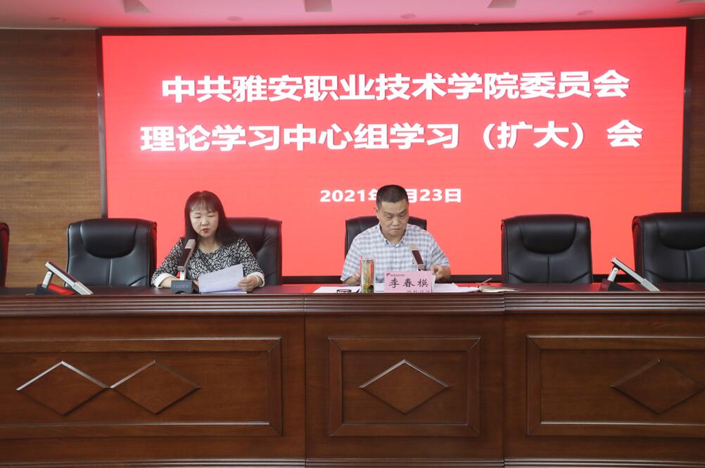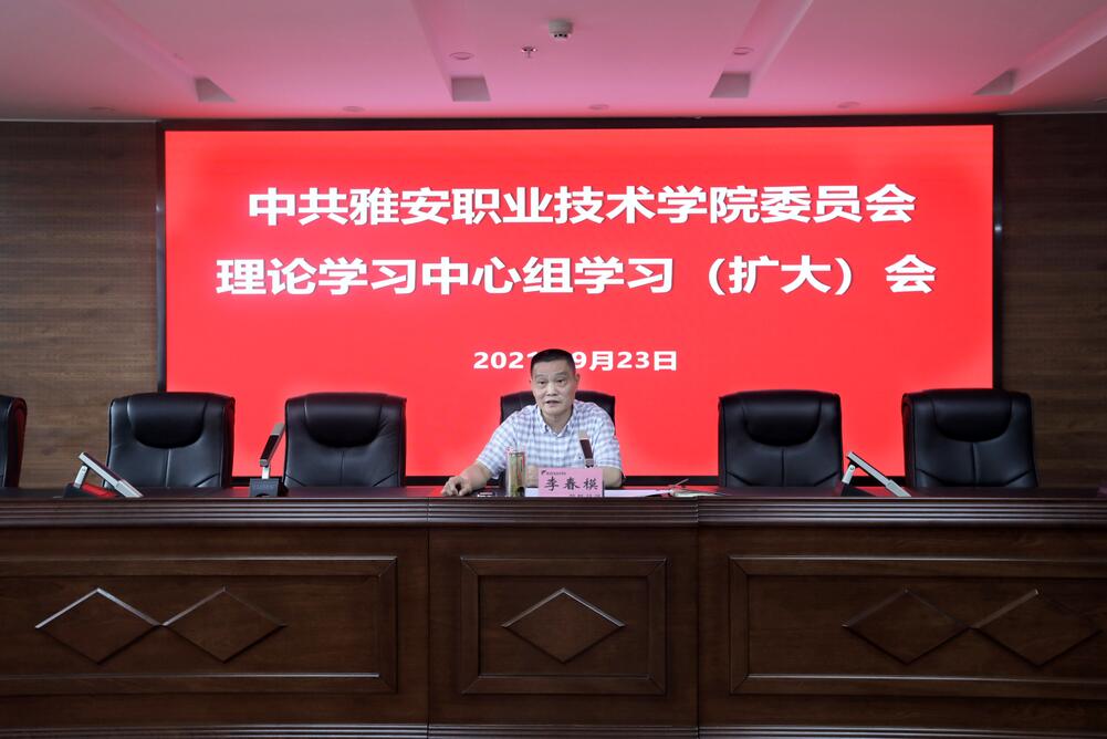 9月23日下午,学院2021年第9次党委理论学习中心组学习(扩大)会在经开校区综合楼311会议室召开。学院党委中心组成员、党政班子成员、中层干部参会。会议由学院党委书记李春模主持。