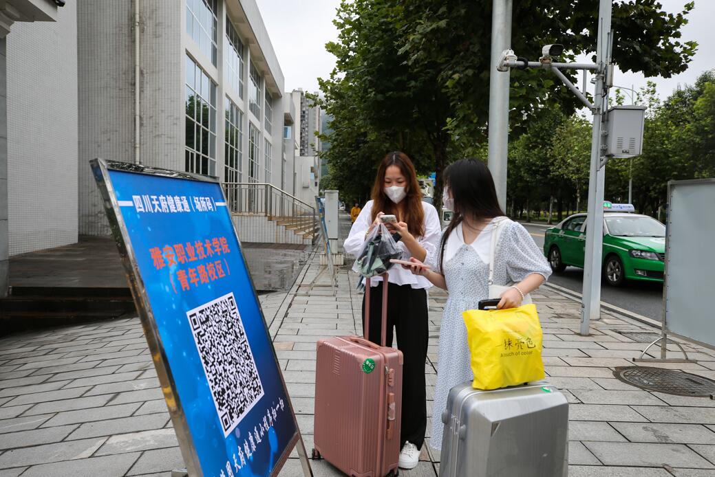 同学们分校区,按着标识标牌依次间隔排队进入,在校门口出示本人学生证或身份证、“四川天府健康通”绿码和核酸报告,全力配合学院值班保安的例行检查、校医室医务人员的体温检测、核酸报告查验、辅导员的审验注册后有序入校。同时,按照省教育厅的要求,学院及时组织省外返校学生进行核酸检测,附属医院安派采集人员到各校区核酸采集点采集标本,连夜检测出结果,以确保师生身体健康和校园安全。