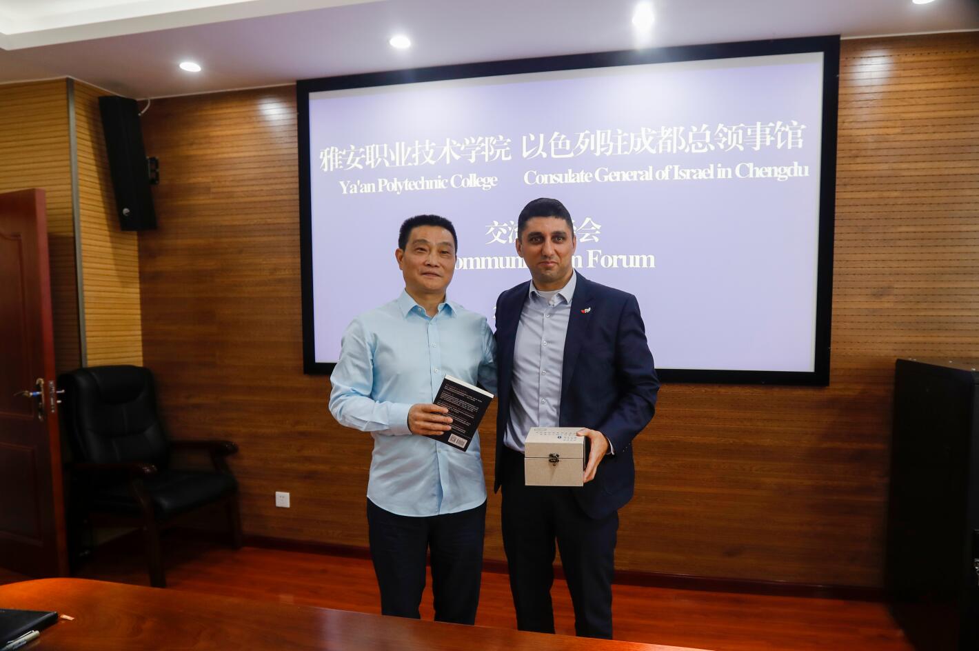6月7日上午,以色列驻成都总领事馆副总领事Ehab Hino一行来学院就职业教育和医学合作等方面开展交流访问。学院党委书记李春模会见来宾,党委委员、副院长樊正康参加座谈会,党委副书记付洪涛主持会议。