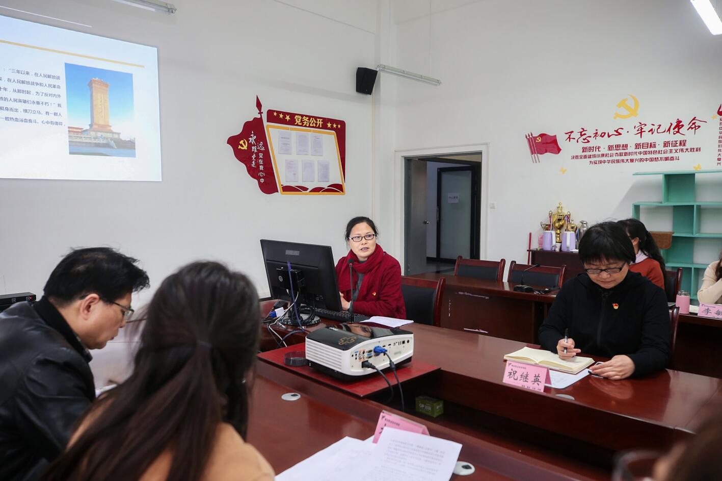 思想政治理论课教学部直属党支部书记李霓以《回望革命起点 追寻初心之源》为题, 从“欲知大道、必先为史”、“不忘初心、方得始终”和“汲取力量、砥砺前行”三个维度,围绕一大会议召开的曲折和艰辛,成果和意义以及革命先辈的奉献精神、信仰力量,饱含深情地为大家讲授了一堂生动而丰富的党史专题课,引导党组织书记要牢记无论走得多远,都不能忘记来时的路,要充分认识开展党史学习教育,对于总结历史经验、认识历史规律、掌握历史主动,在新的历史起点上奋力夺取新时代中国特色社会主义伟大胜利的重大意义。