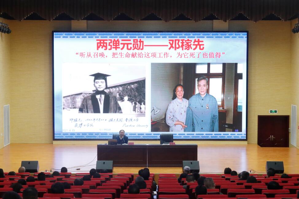 李春模在总结讲话中指出,从1921年中国共产党成立,到2021年中国共产党百年华诞,风雨百年,青史可鉴。立足党的百年历史新起点开展党史学习教育,是党中央的重大决策部署,是建设教育强国、也是推动学院内涵式发展的迫切要求。“两弹一星”是中国共产党人的精神谱系星空上的一颗非常耀眼的“明星”,在第六个全民国家安全教育日回顾中国“两弹一星”事业走过的艰辛历程,接受“两弹一星”精神的洗礼,对于我们学史明理、学史增信、学史崇德、学史力行具有极其重要的意义。全体党员要在党史学习中悟思想伟力,在学习党史中感悟初心使命,在党史学习中赓续共产党人精神血脉,用党的一百年奋斗历程中那些伟大精神滋养信仰,用精神坚定信仰,在党史学习教育中领悟习近平新时代中国特色社会主义思想,领悟中国共产党为什么能、马克思主义为什么行、中国特色社会主义为什么好等道理,领悟坚定道路自信、理论自信、制度自信、文化自信的重大意义。要认真领会报告会精神,把“两弹一星”精神带到工作中去传承好、发扬好,要以此次专题宣讲为契机,不断推进党史学习教育走深走实。希望大家进一步深化认识、提高站位、务实作风、细化部署、落实成效,以优异成绩迎接建党100周年。