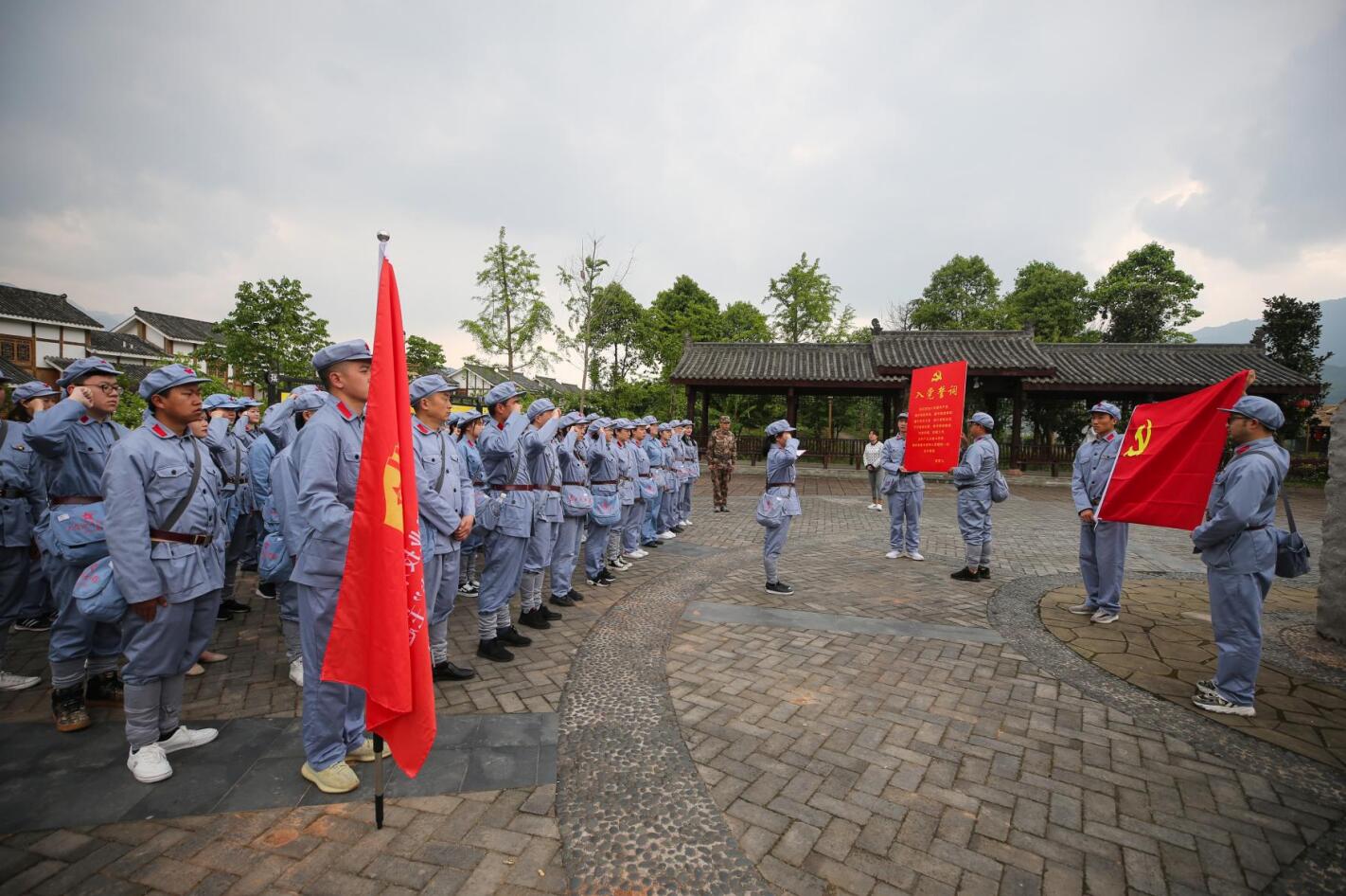 “起来,不愿做奴隶的人们……”伴随着国歌声的响起,“学党史、感党恩、跟党走”主题教育 “接受一次洗礼” 活动,在党性教育基地四川长征干部学院雅安夹金山分院开班。4月23日,党委书记李春模,副书记付洪涛,党委委员、副院长樊先茂、党委委员、智能制造与信息工程学院党总支书记宋立智、学生处、宣传统战部、二级学院中层干部参加开班仪式,雅安夹金山分院副院长勒伟主持仪式。35名省级优秀毕业生代表和50余名教师代表参加仪式。