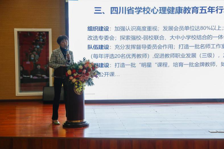 四川高校心理健康教育专委会主任陈秋燕教授代表专委会做年度工作安排,解读了当前国家对高校心理健康教育的政策,对四川省心理健康教育现状进行了分析及规划。她表示,本次会议凝聚多方力量、加强校级合作、展现多项成果,对我省高校心理健康教育的工作未来一段时间发展起到规划指导作用。