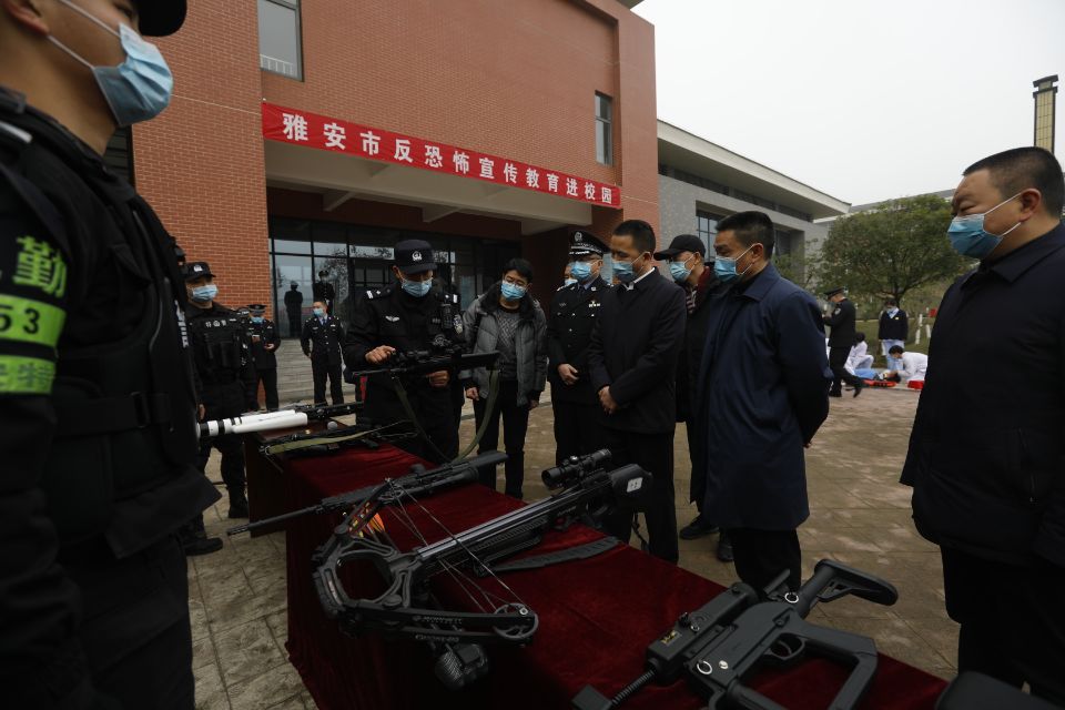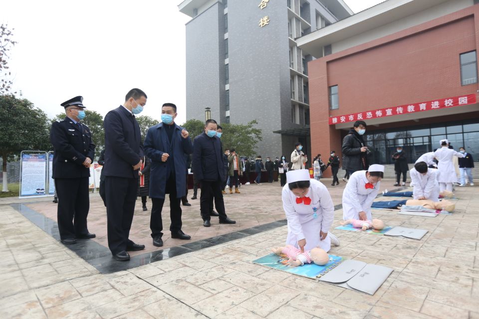 为深入学习贯彻《中华人民共和国反恐怖主义法》,依法推进反恐怖工作,全面提升广大人民群众反恐防恐意识,12月27日上午,雅安市“反恐怖宣传进校园”暨《反恐怖主义法》颁布五周年宣传活动启动仪式在学院实训与服务中心聚雅厅举行。雅安市政府副市长、雅安市反恐怖工作领导小组副组长、雅安市公安局局长张春刚,学院党委书记李春模,市政法委、公安局、教育局、司法局、卫生健康委、应急管理局相关负责人,学院党委委员、副院长谭凌,学生代表参加启动仪式。