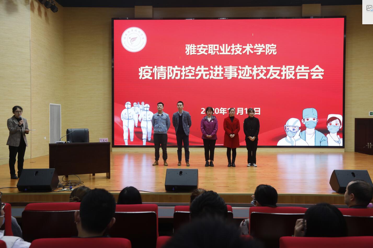 为弘扬抗疫精神,树立青春标杆,围绕“人人出彩、技能强国”职业教育活动周主题,11月10日下午,学院疫情防控先进事迹校友报告会分别在青年路校区汇雅厅和实训与服务中心聚雅厅举办。曾跟随援鄂医疗队前往武汉一线抗疫的彭云耀、陈进东、杨兴蓉、李涯霖四位校友及见义勇为者在校生解雪连受邀来校,就抗疫期间的感人故事和日常工作中的感悟和体会与师生进行了分享。学院党委副书记付洪涛,党委委员、宣传统战部部长郭英才,各二级学院党政负责人,教师、辅导员代表及学生代表共600余人参加了报告会。报告会由宣传统战部副部长尹雪智主持。