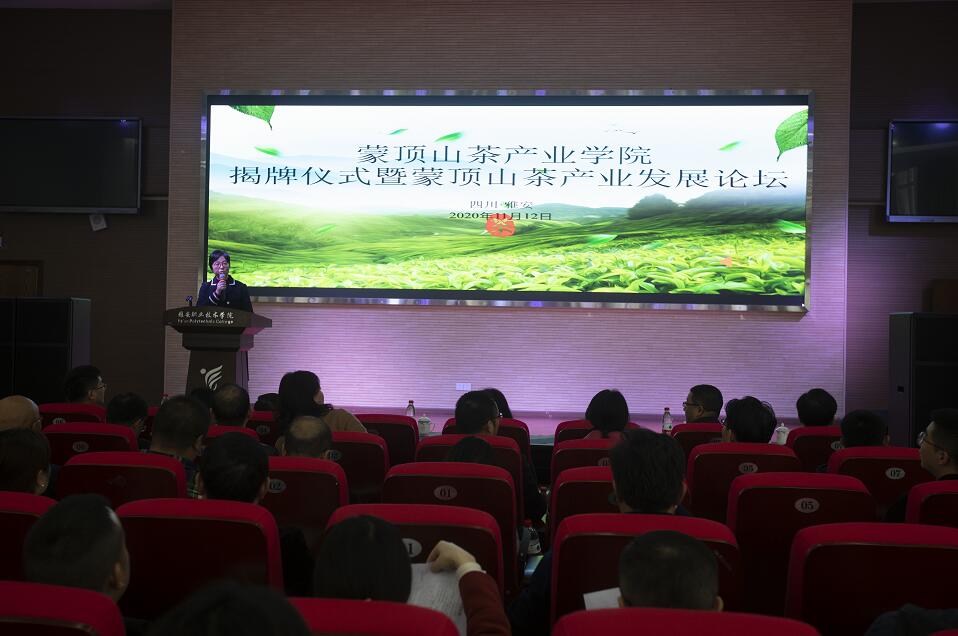 职业教育活动周期间,11月12日,蒙顶山茶产业学院揭牌仪式暨蒙顶山茶产业发展论坛在青年路校区汇雅厅举行。学院院长石静、名山区委副书记陈永康、雨城区副区长廖鹏、四川省农业科学院茶叶研究所党委书记王云、浙江树人大学国际茶文化学院执行院长张星海等出席会议。大会由学院副院长彭裕红主持。