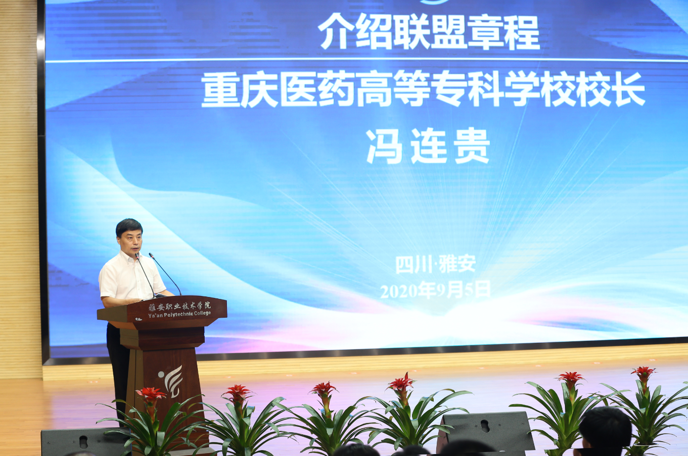 学院院长石静主持联盟成立大会 重庆医药高等专科学校校长冯连贵介绍联盟章程