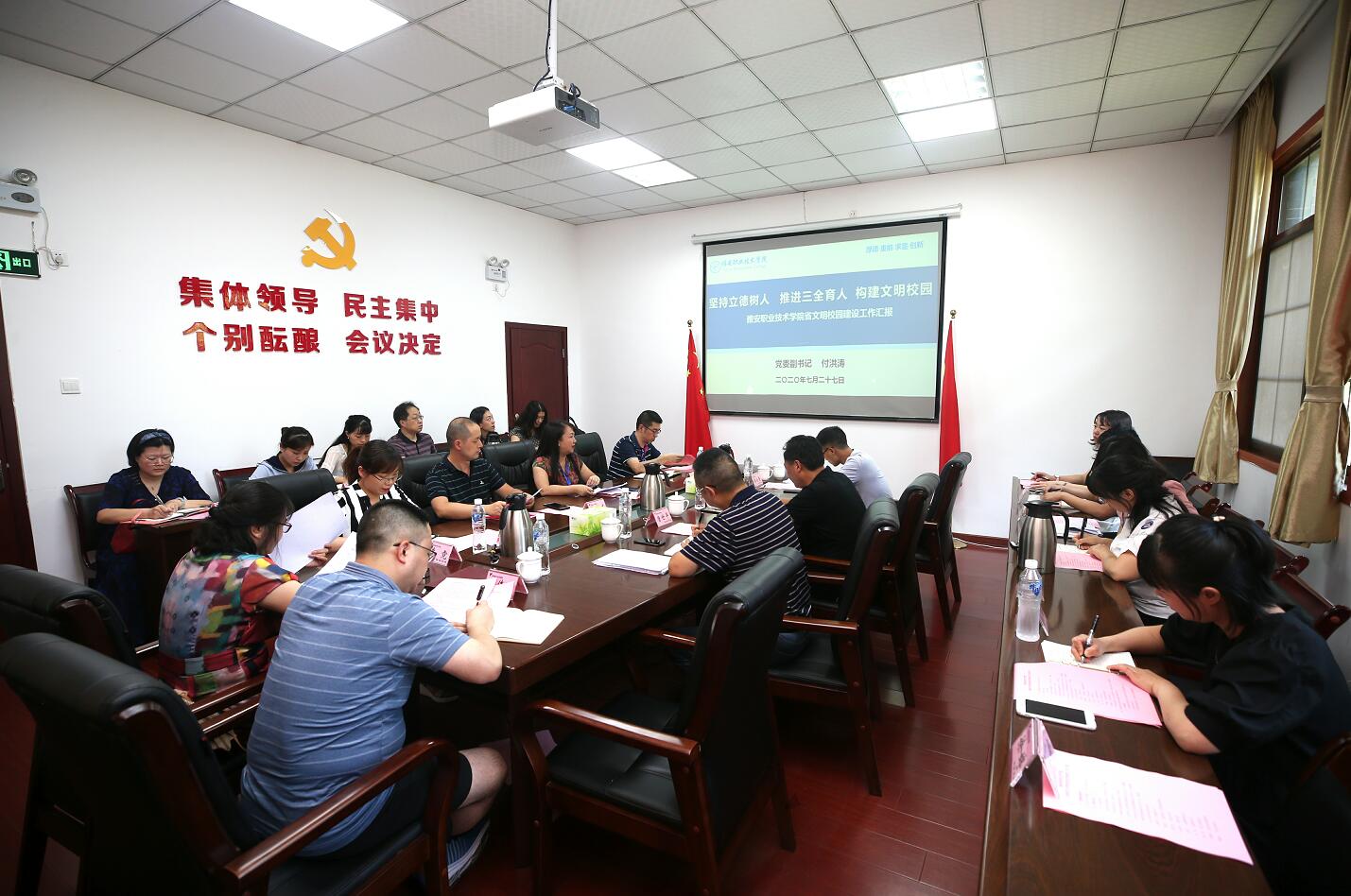 7月27日下午,省教育厅、省文明办委托雅安市委宣传部、文明办进校开展省文明校园复查验收工作。复查组由市委宣传部副部长、市文明办主任魏涛一行6人组成。学院党委副书记付洪涛汇报了我院文明校园建设情况,党委委员、宣传统战部部长郭英才主持汇报会。