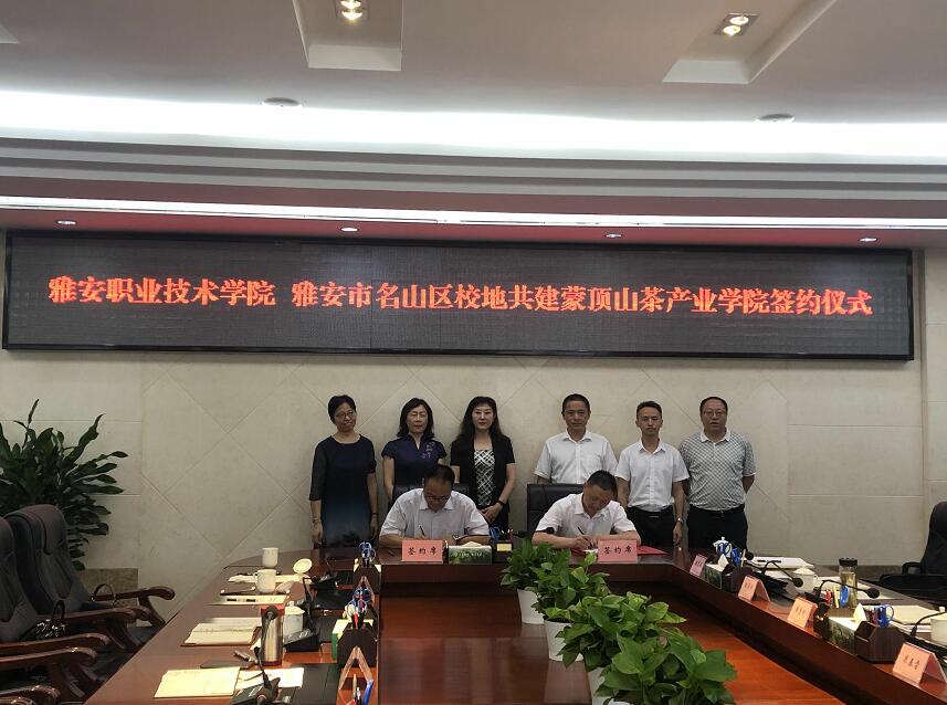 最后,樊先茂与黄勇刚分别代表学院与名山区人民政府就校地共建蒙顶山茶产业学院进行了签约。
