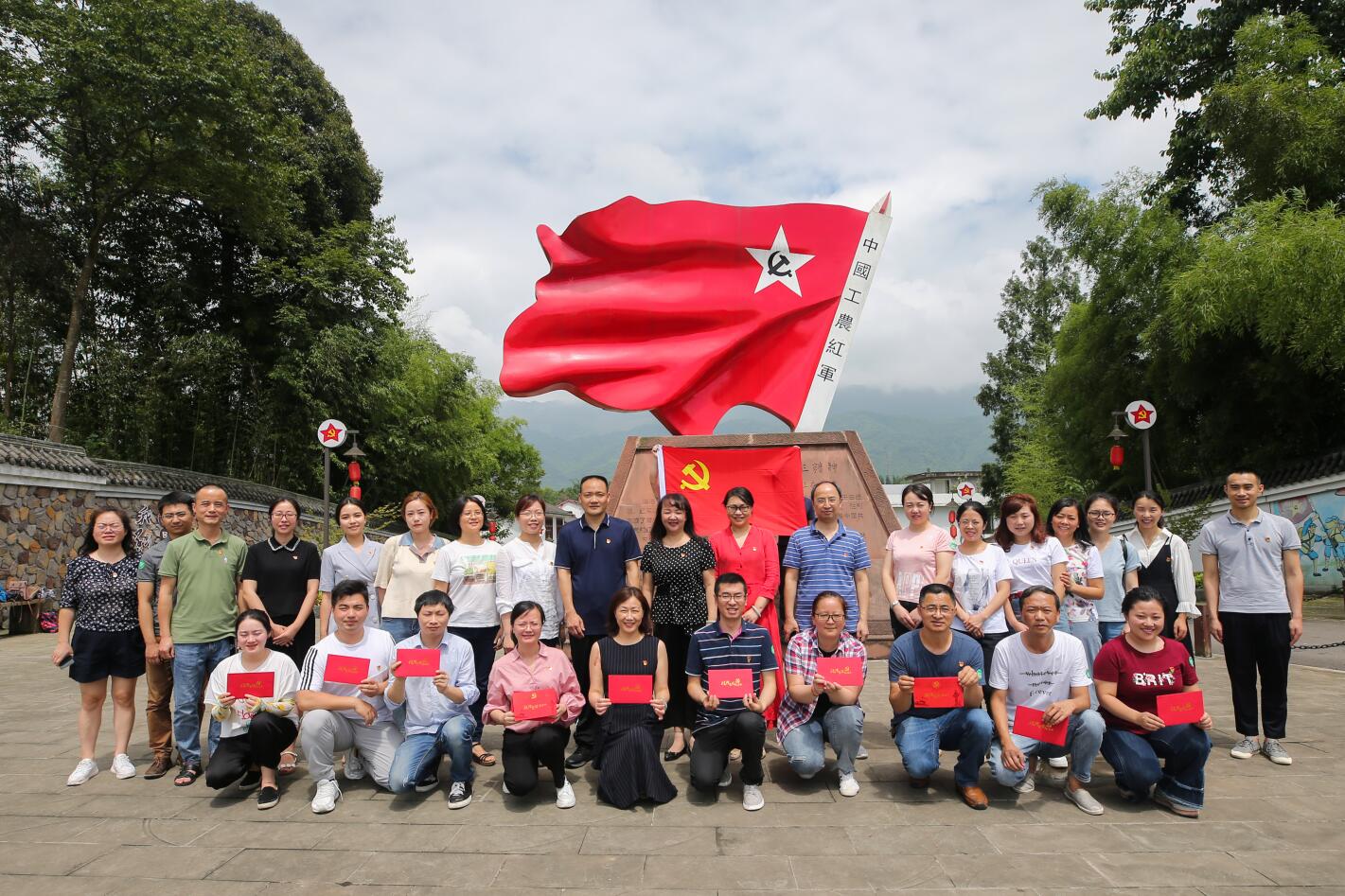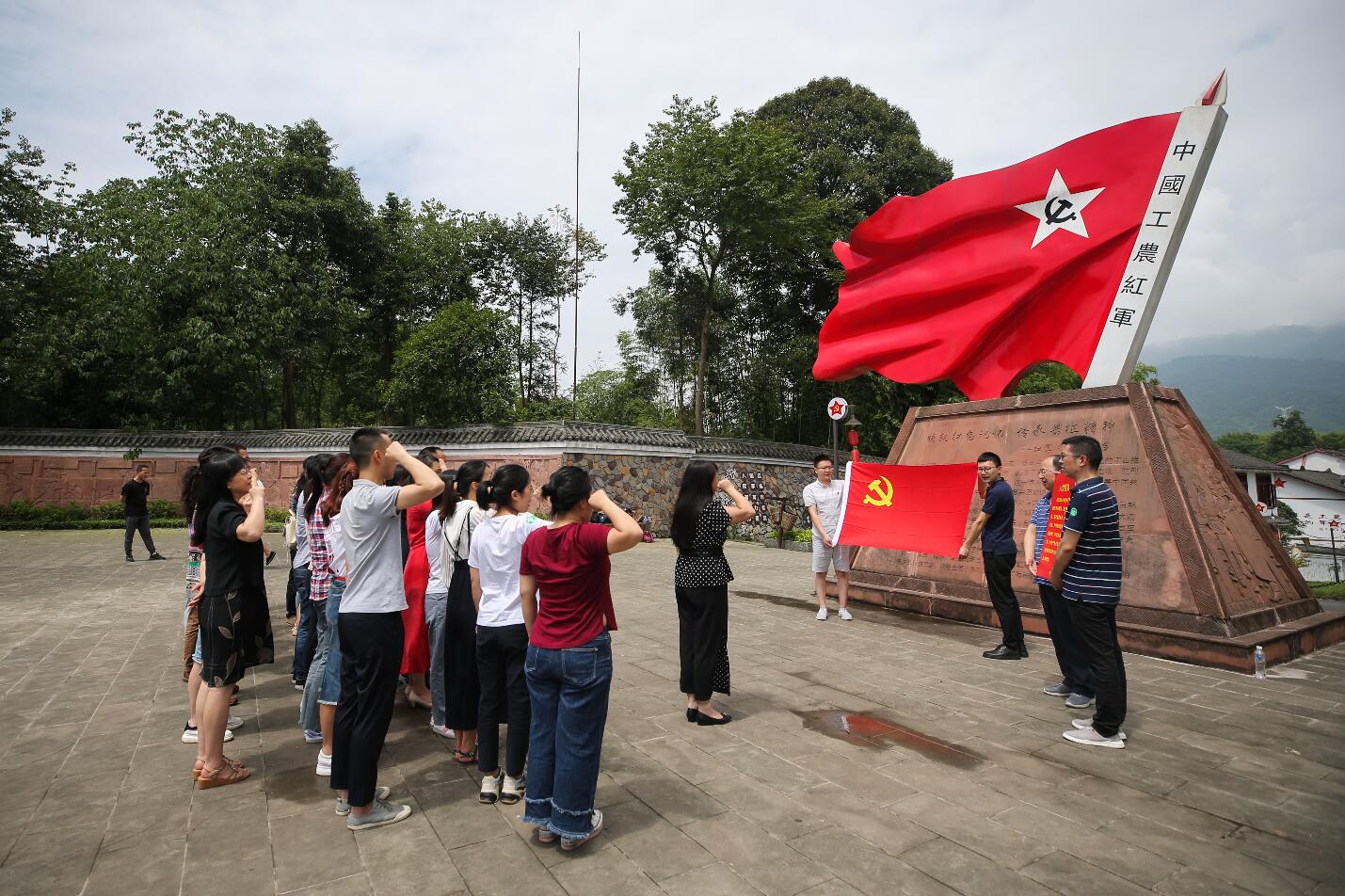1935年11月至1936年2月,红四方面军在天全县战斗108天,建立了红军大学、红军总政治部、红军总医院、苏维埃政权,留下了众多珍贵的革命遗物、遗迹和史料,成为宝贵的精神财富。党员同志们来到仁义镇“红军村”,在红军广场,面对党旗重温了入党誓词,为11名在6、7月份入党的同志集体过了“政治生日”。随后,党员同志们实地参观了红军总部、红四方面军总政治部、红军大学、红军医院、红军井等旧址,第二党支部书记洪松林上了《红军长征在天全》微党课。
