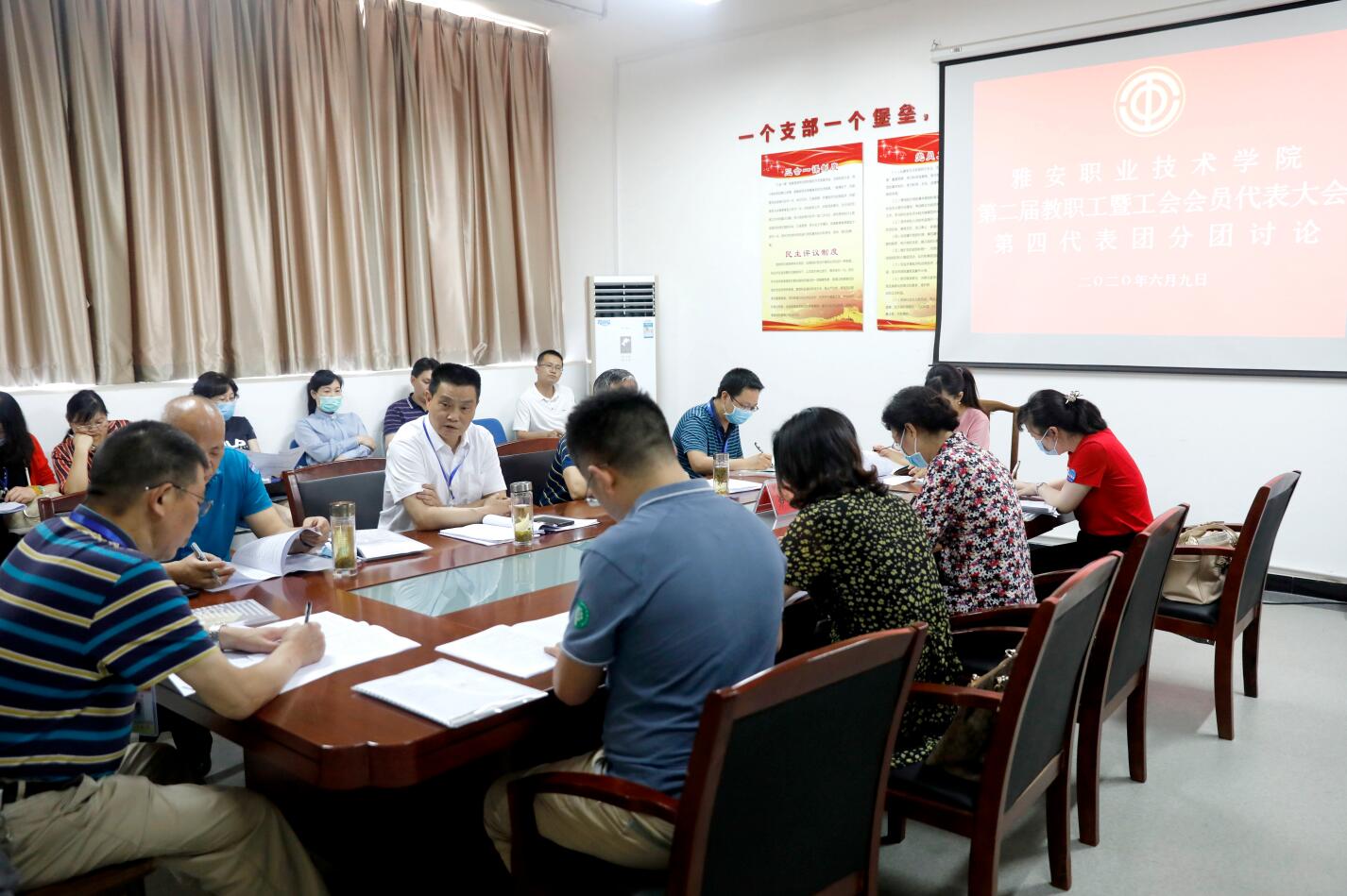 随后,与会代表分成四个团围绕以上大会报告和相关材料进行了认真充分的讨论,提出了建设性的意见和建议,体现了代表们主人翁的精神和关心学院建设发展的政治意识、责任意识和大局意识。