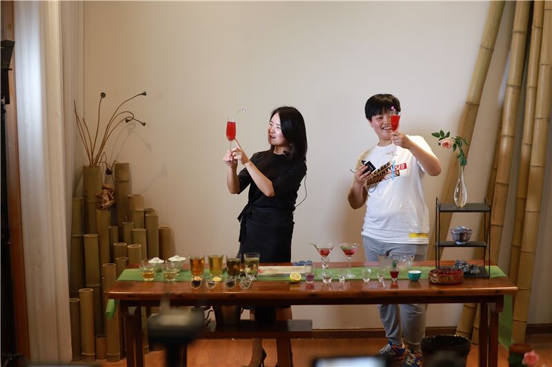 经管学院党支部副书记、高级茶艺师任敏副教授和新锐茶人蒋丹老师担任直播嘉宾,分别在蒙顶山景区天盖寺、山和茶业公司开展了“生活茶艺—如何冲泡好一杯蒙顶山茶”、“快乐玩茶—夏日清凉茶调饮制作”为主题的茶艺直播课。